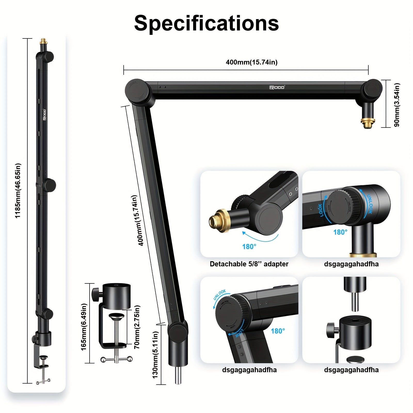 Soporte de micrófono de aleación de aluminio negro para grabación de podcasts y juegos