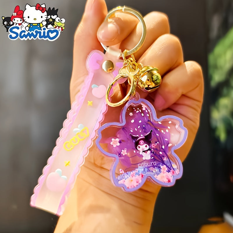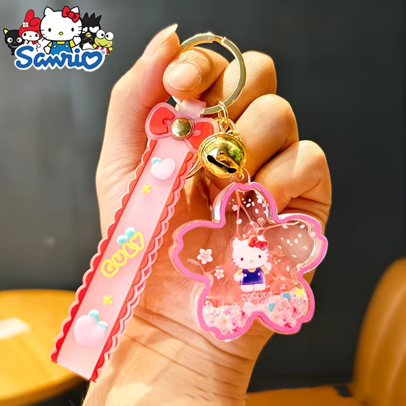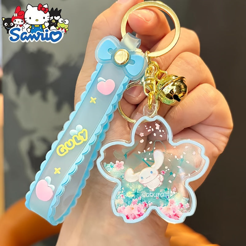 Llavero de felpa con flor de cerezo para llaves de coche y regalos, colgante de botella de arena movediza