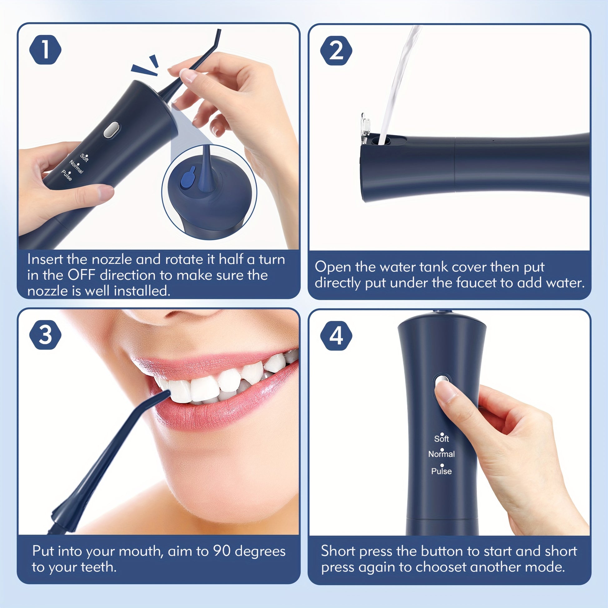 Hilo dental de agua inalámbrico con 3 modos, 6 boquillas de chorro, recargable por USB, batería de 1200mAh