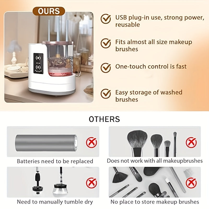 Limpiador, secador y desinfectante eléctrico para brochas de maquillaje 3 en 1 alimentado por USB
