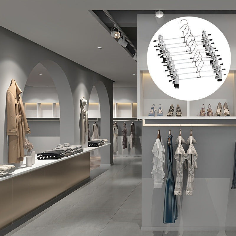 Juego de 10 perchas ajustables de acero inoxidable para pantalones, organizador antideslizante y ahorrador de espacio para faldas, vaqueros, abrigos