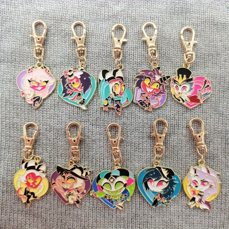 Juego de 10 llaveros de animales de dibujos animados coloridos de ganchillo con mosquetón para mujeres y niñas