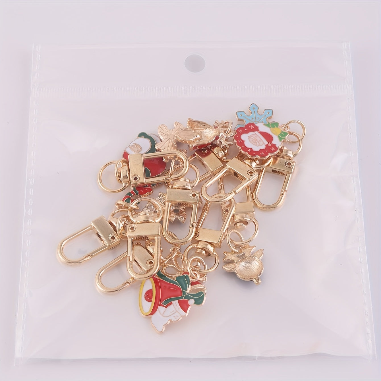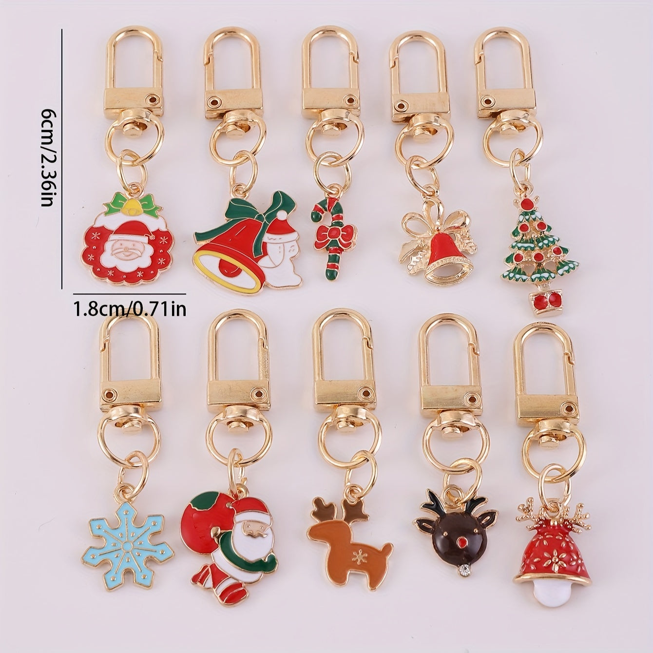 Juego de 10 llaveros de aleación de dibujos animados para Navidad, joyería festiva, clips de mosquetón, moda femenina