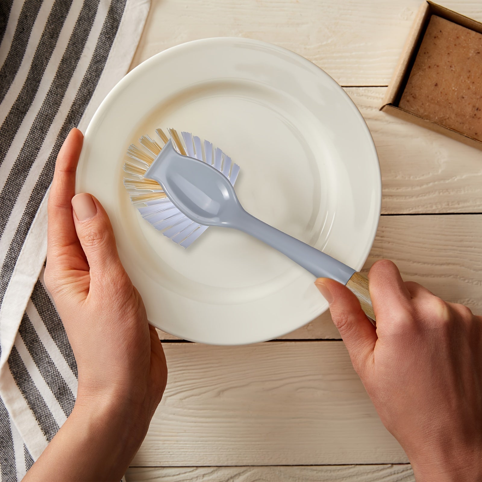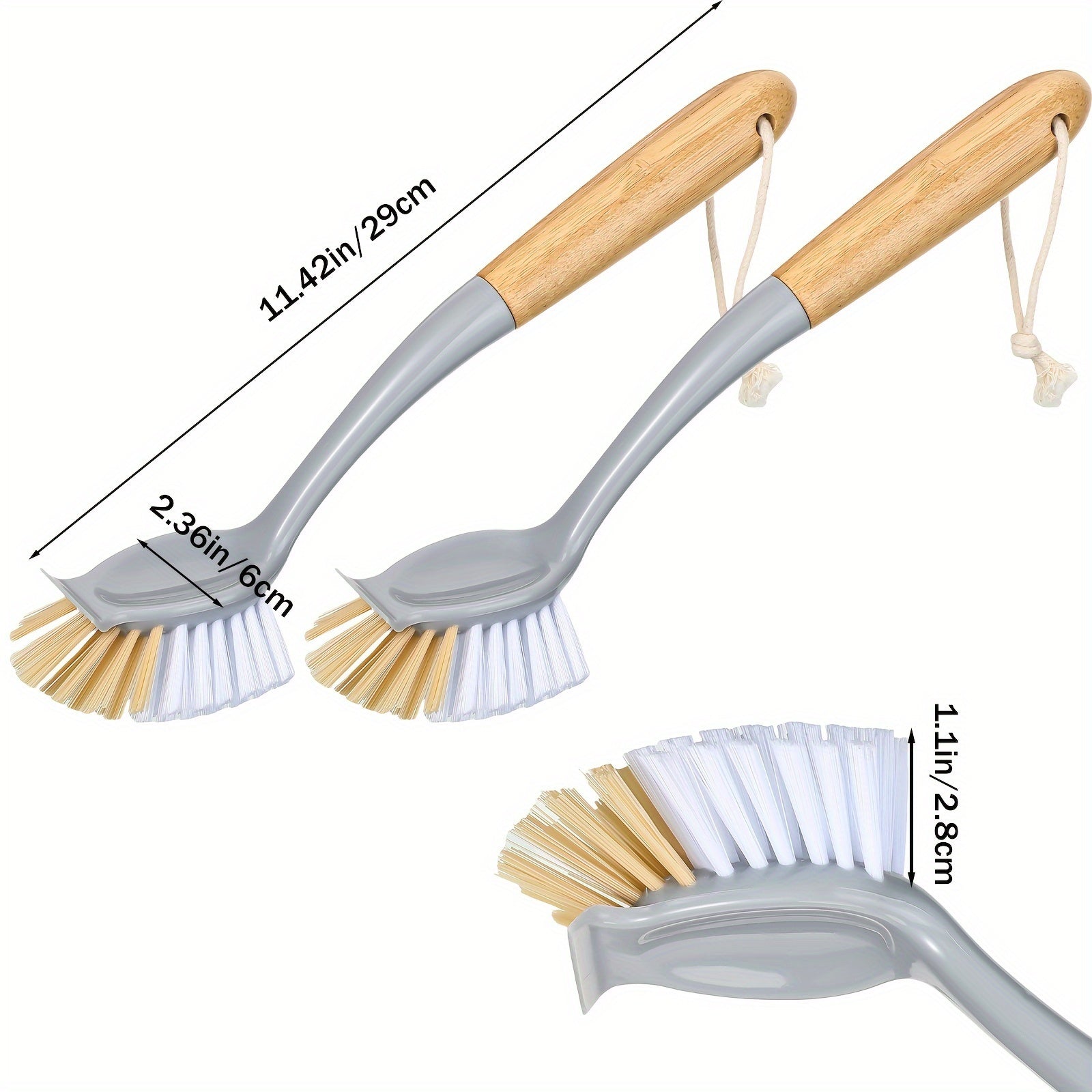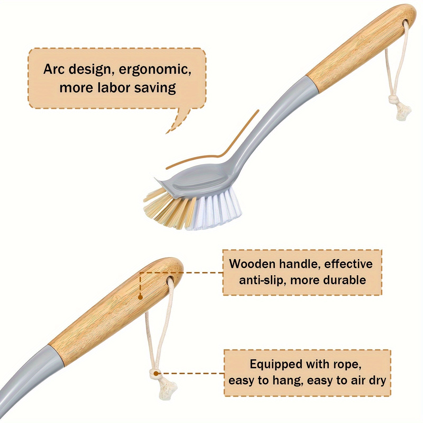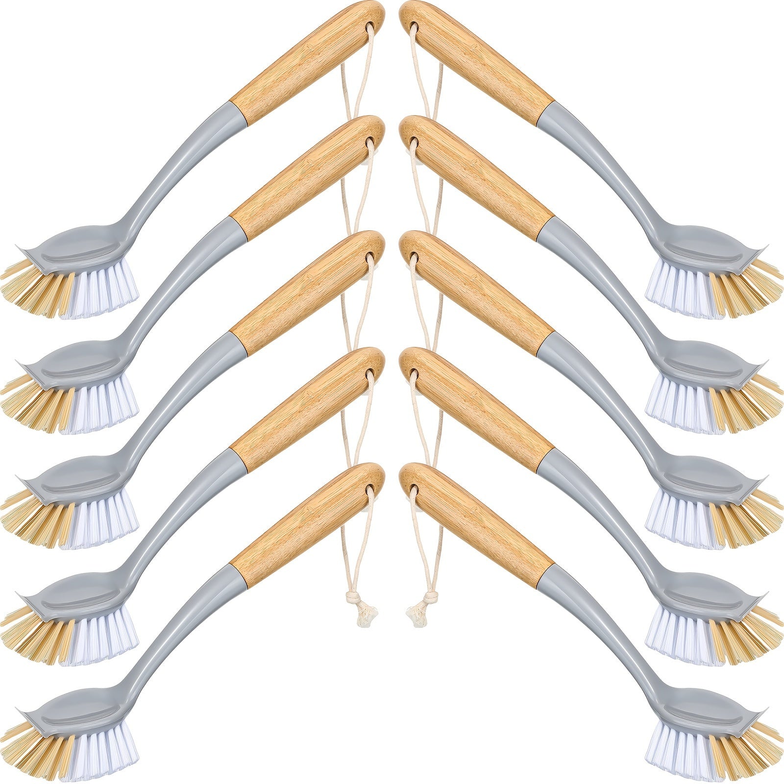 Juego de 10 cepillos de bambú largos para platos con raspador para sartenes, ollas y fregaderos