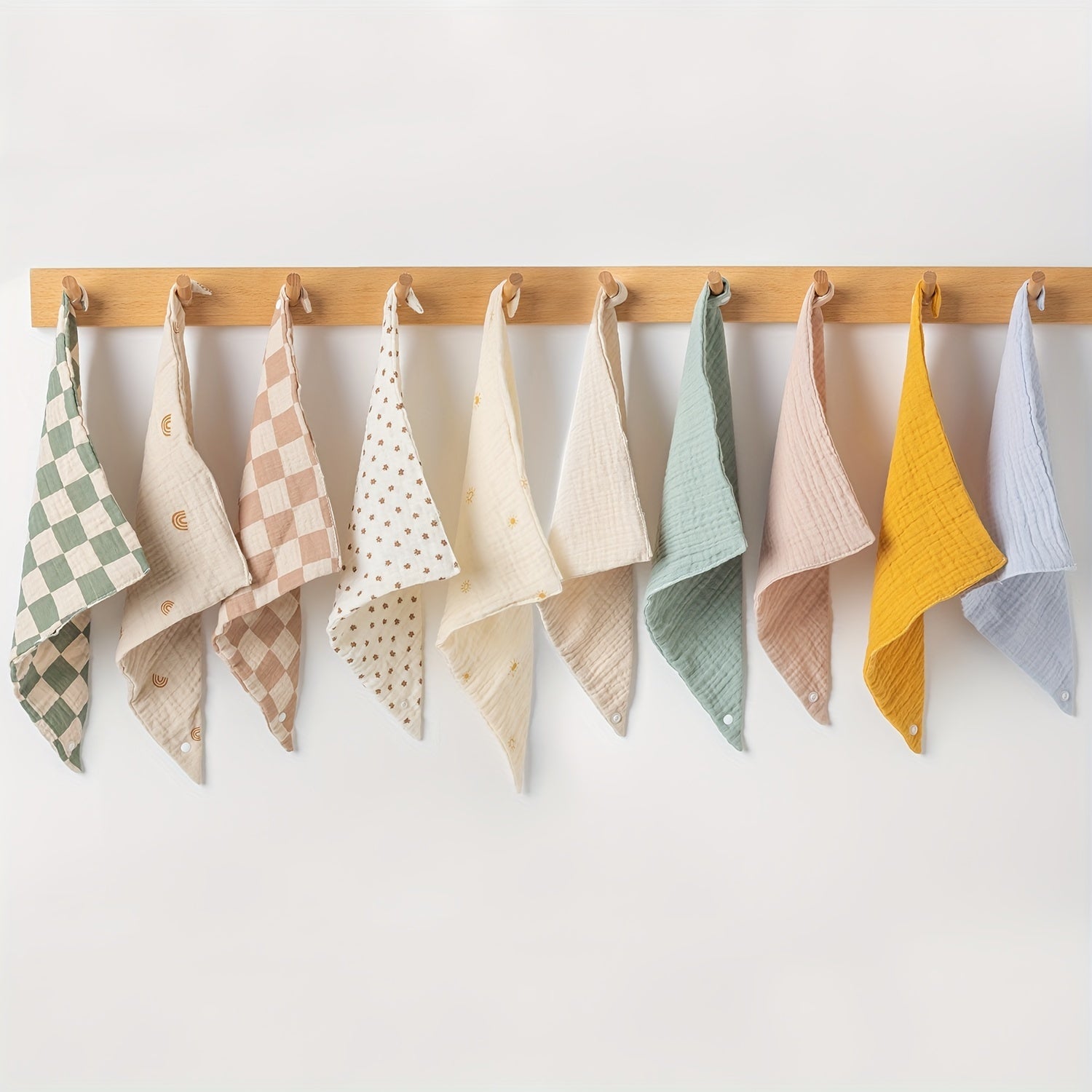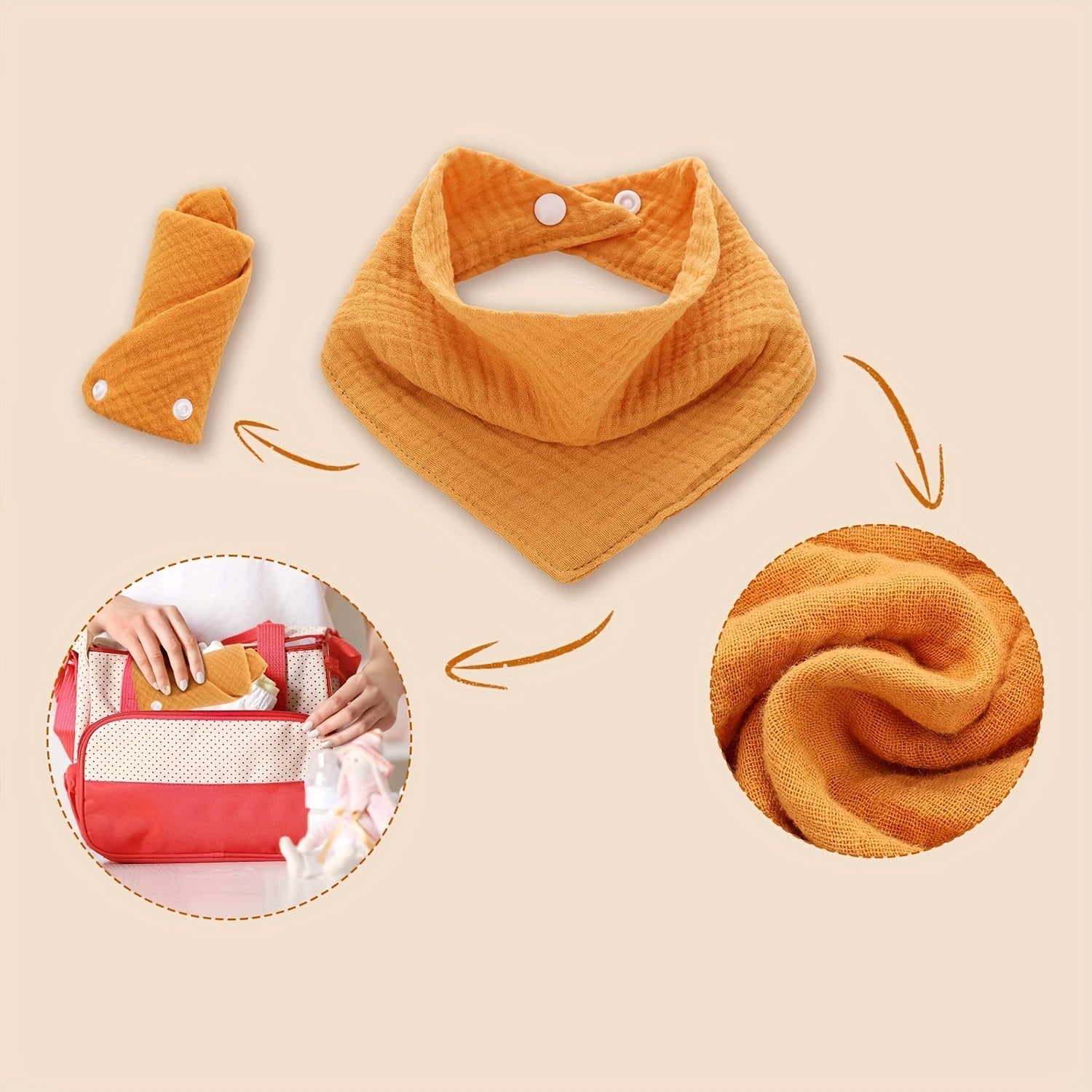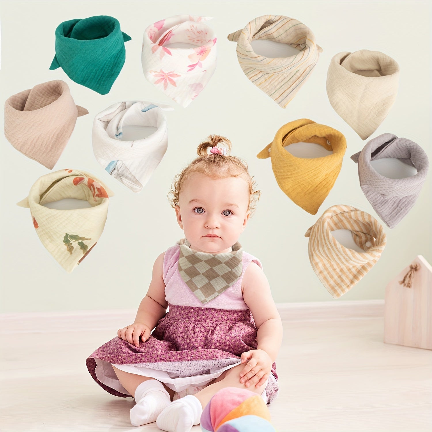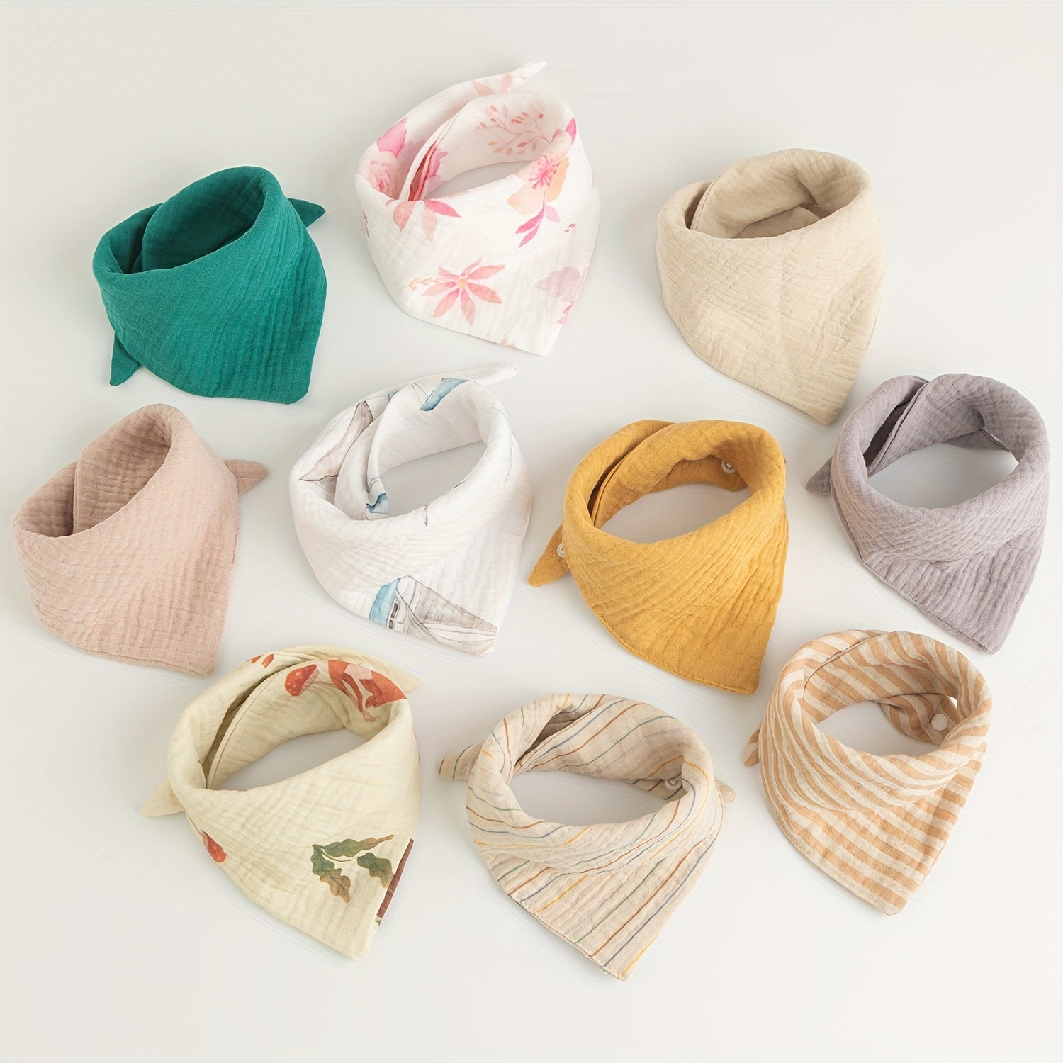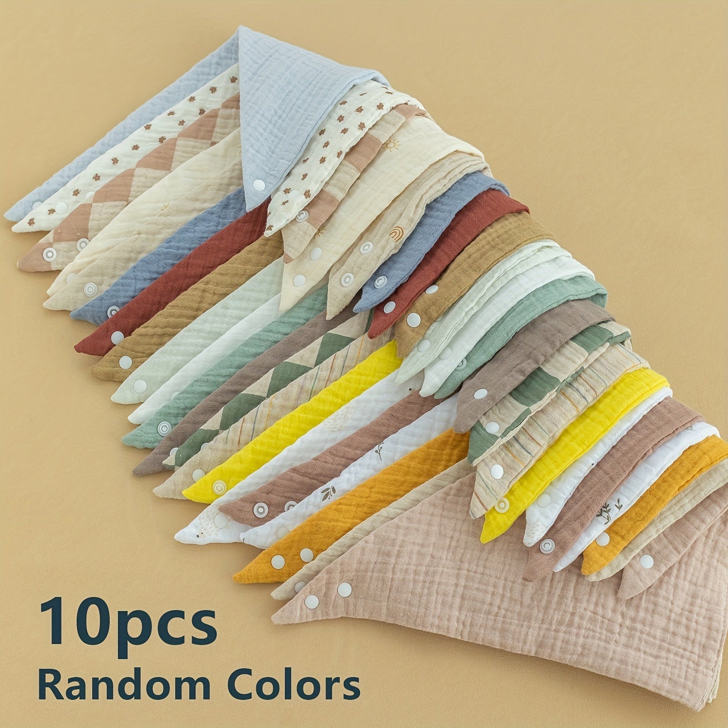 Juego de 10 baberos de muselina para niños, toallas absorbentes en forma de triángulo con cierre de botón