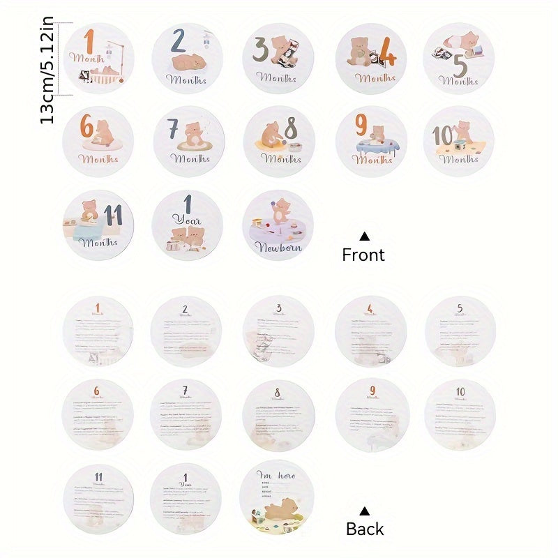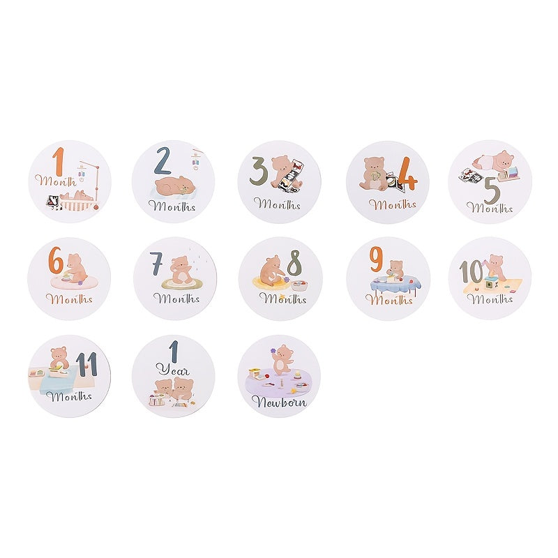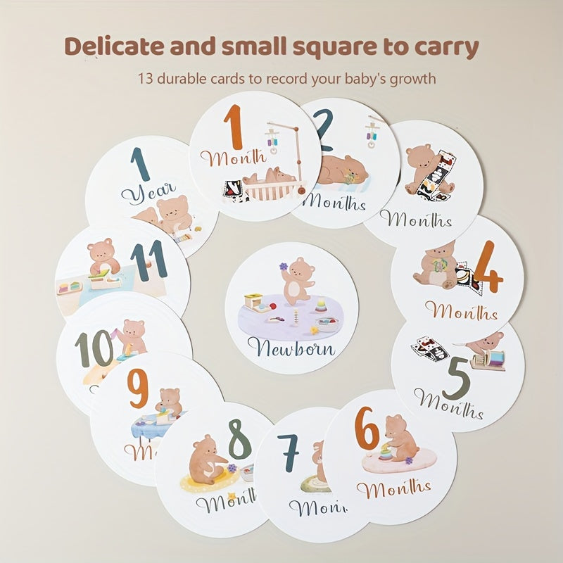 Set de 13 tarjetas de hitos para bebés para fotos mensuales y seguimiento del crecimiento con diseño adorable de oso