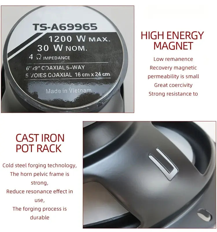 Juego de 2 altavoces coaxiales para coche de 6x9 pulgadas y 1200W para sonido envolvente de alta fidelidad