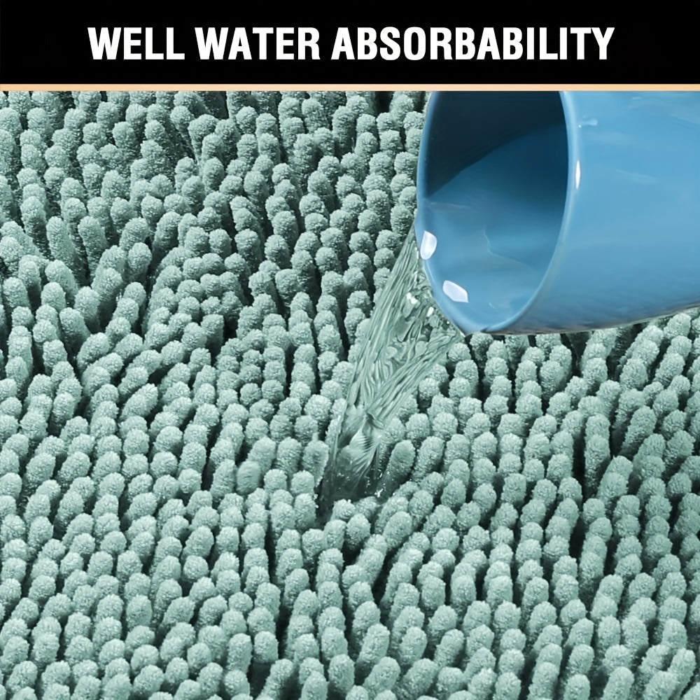 Juego de 2 alfombrillas de baño de chenilla en forma de U y rectangulares, felpa peluda, absorción de agua, antideslizantes