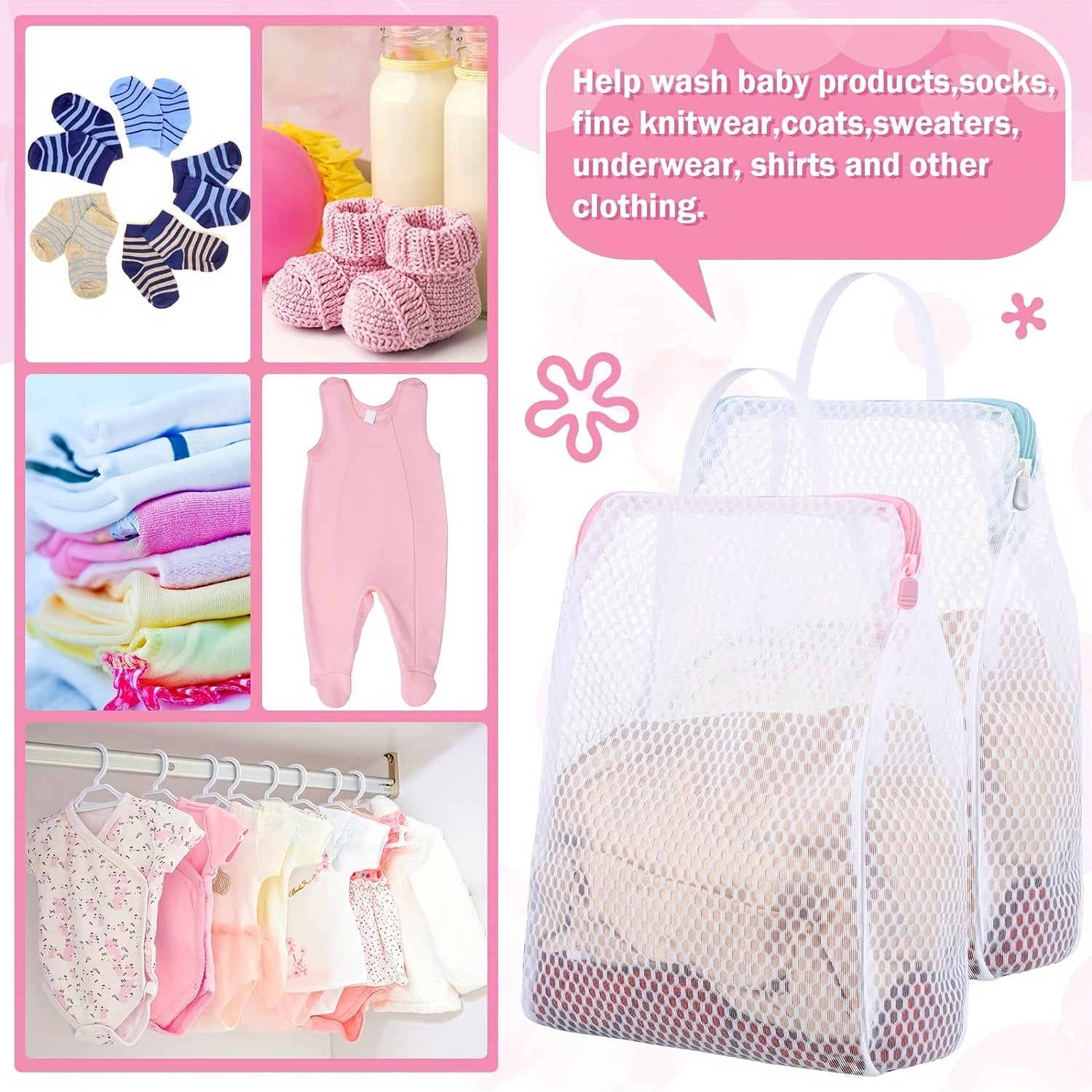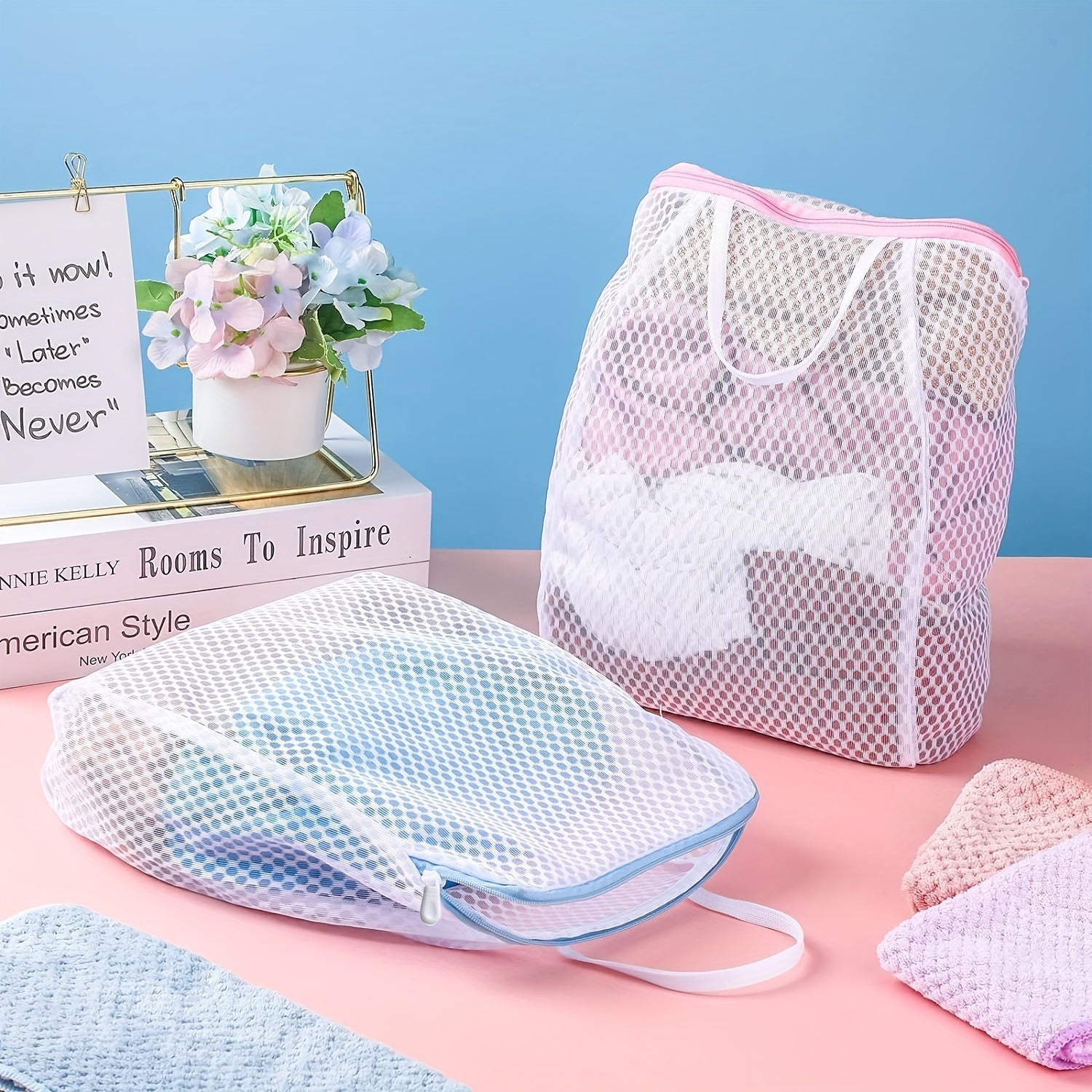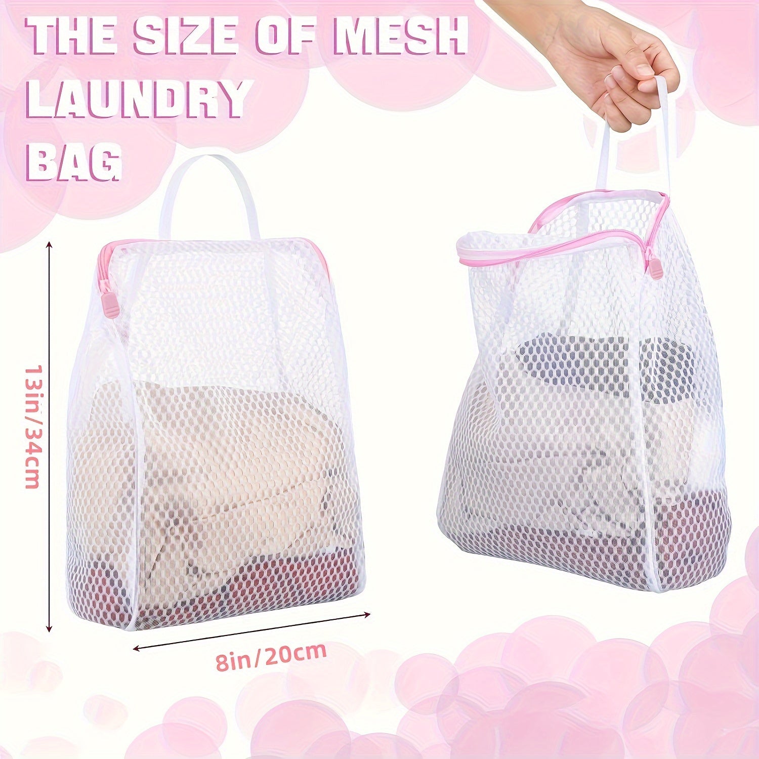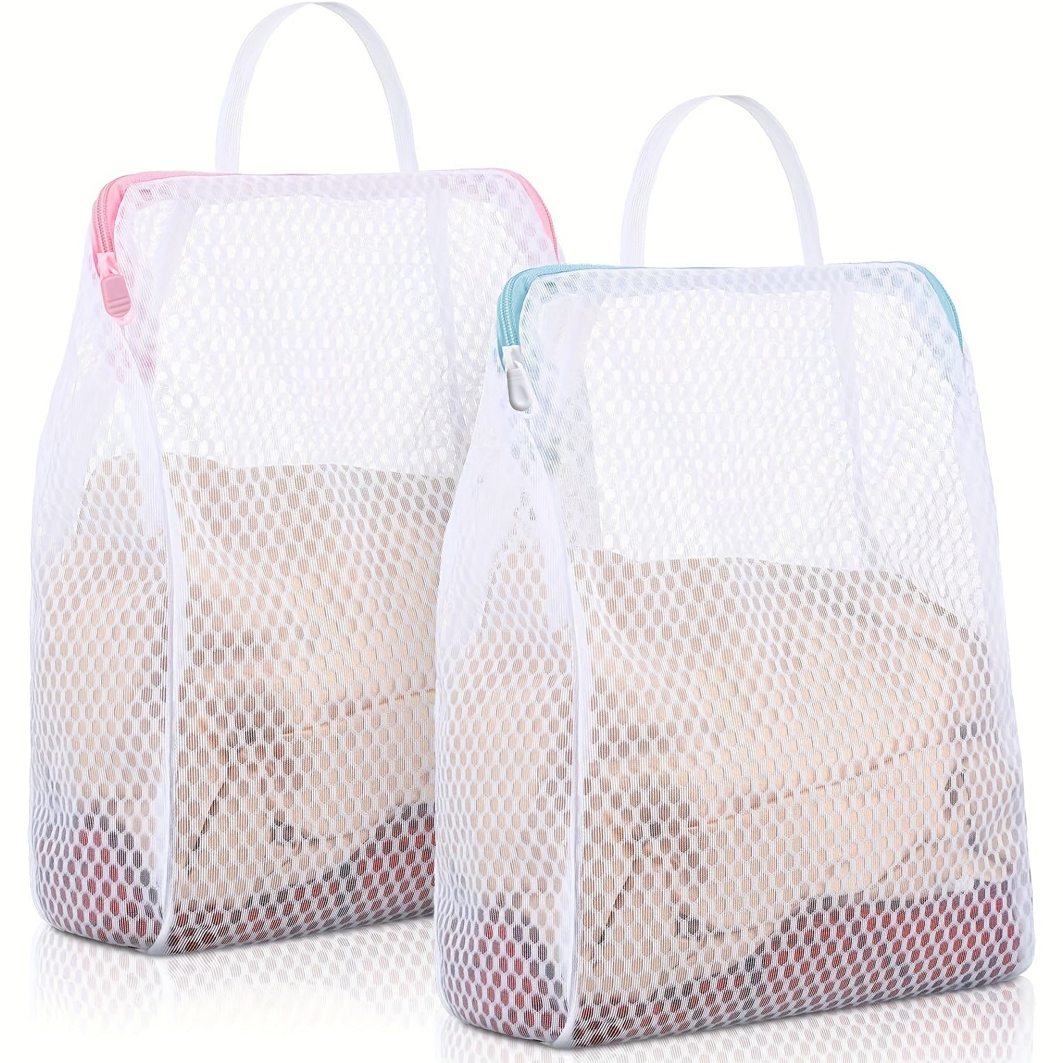 Juego de 2 bolsas de lavandería de poliéster trenzado con cremallera y asa para prendas delicadas