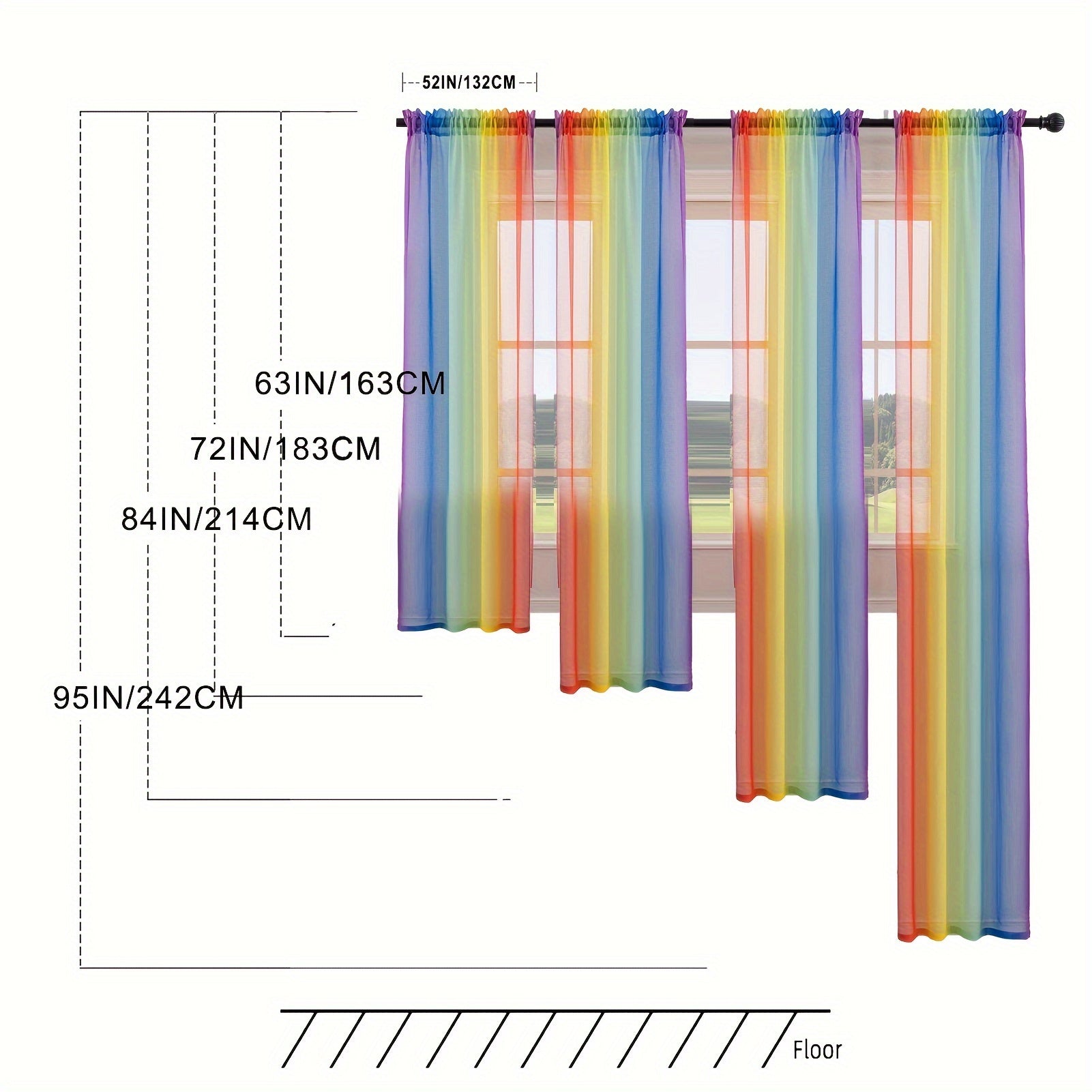 Juego de 2 cortinas transparentes con rayas arcoíris 100% poliéster con bolsillos para barra para sala de estar, dormitorio, oficina