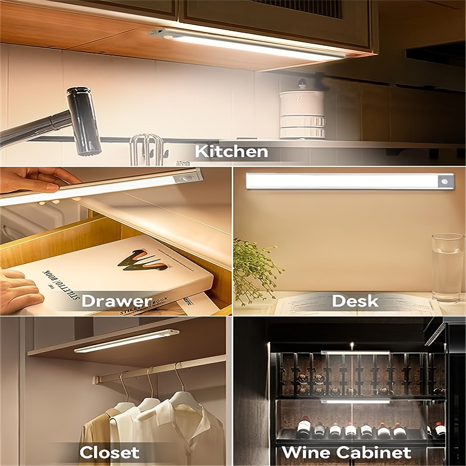 Juego de 2 luces de armario con sensor de movimiento recargables, luces de armario inalámbricas magnéticas, ajustables y fáciles de instalar