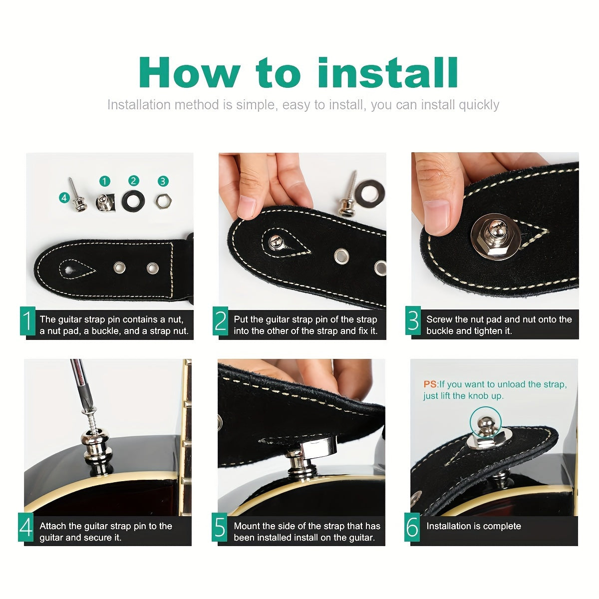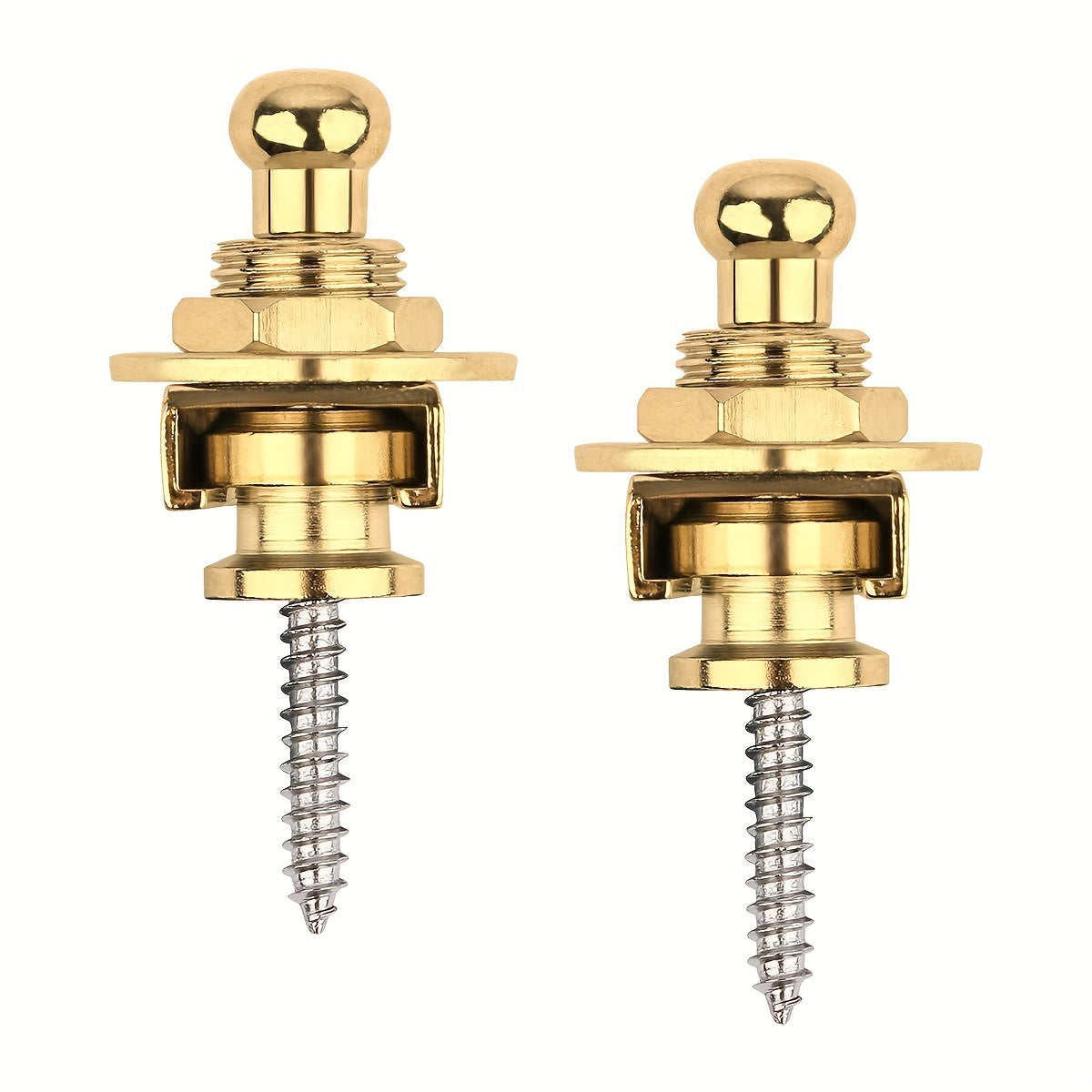 Juego de 2 cerraduras de correa de guitarra de aleación con botones de liberación rápida negro y dorado