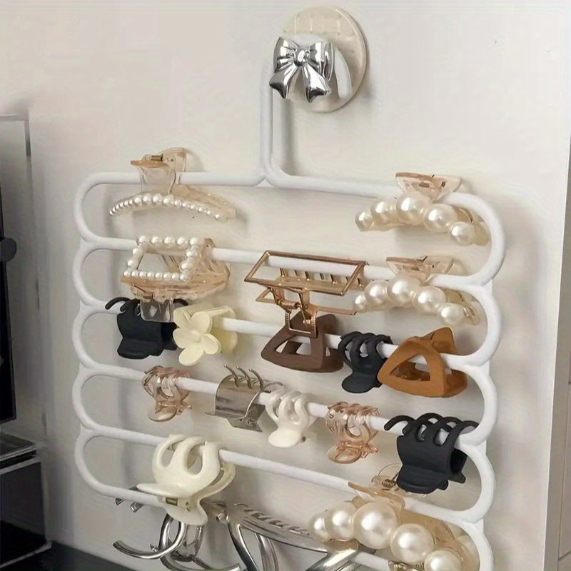 Juego de 2 perchas de metal apilables de 5 niveles para pantalones y corbatas antideslizantes ajustables