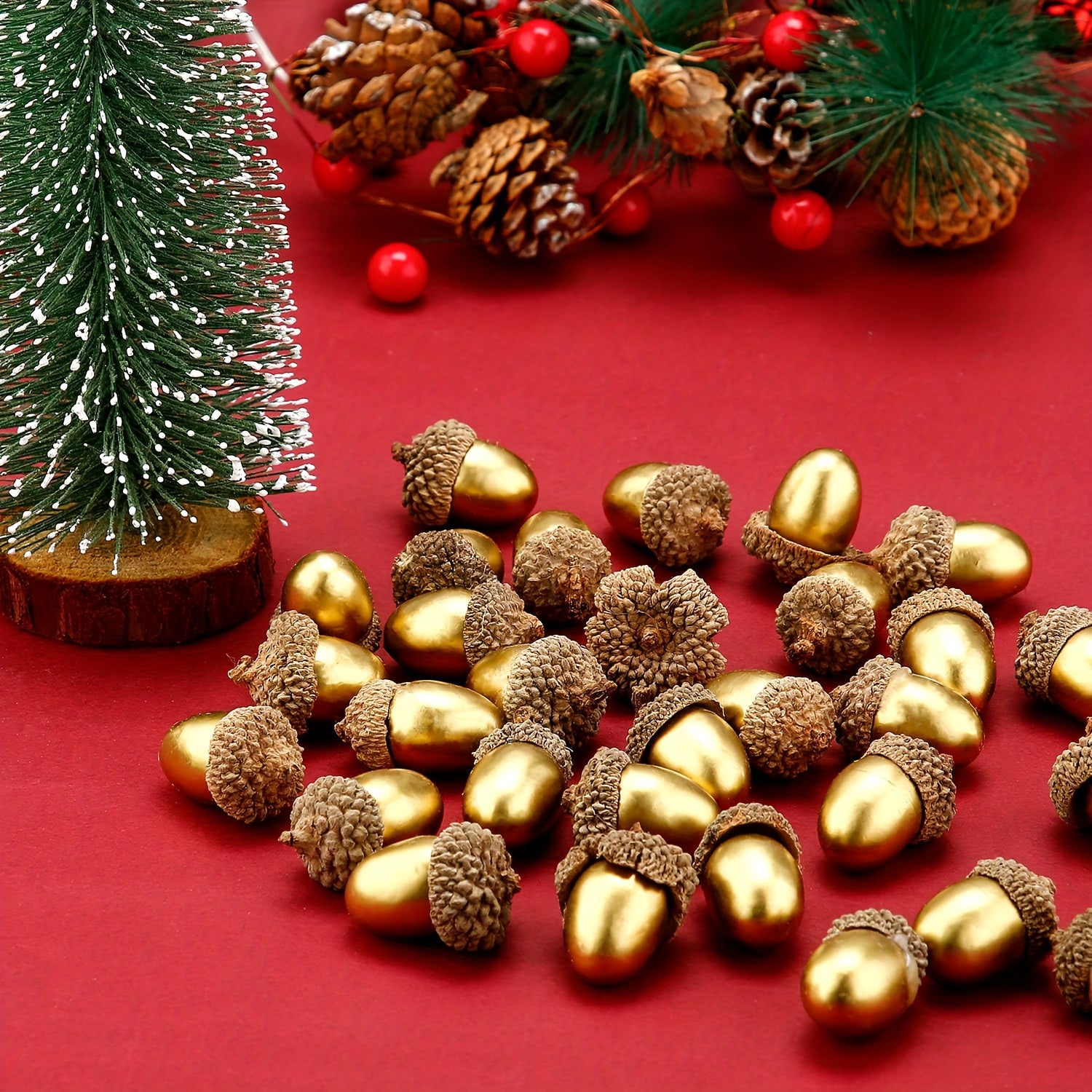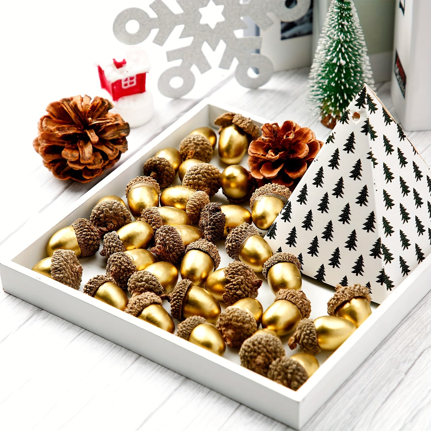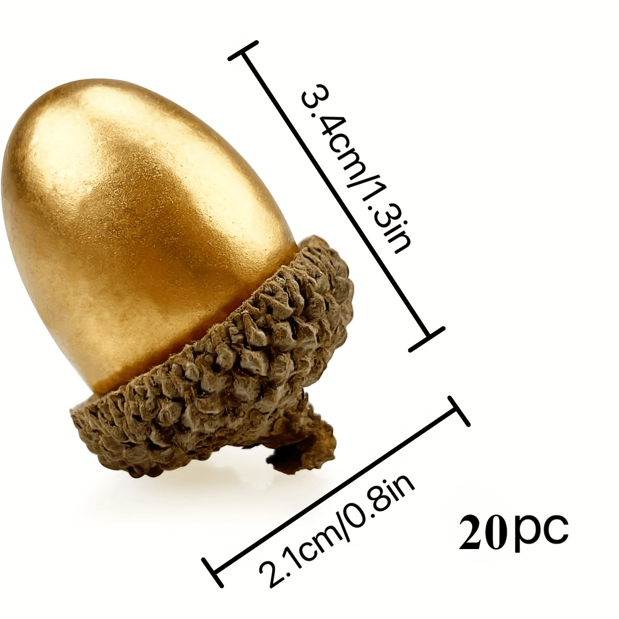Juego de 20 bellotas artificiales doradas para decoración de otoño en el hogar, no se necesitan pilas