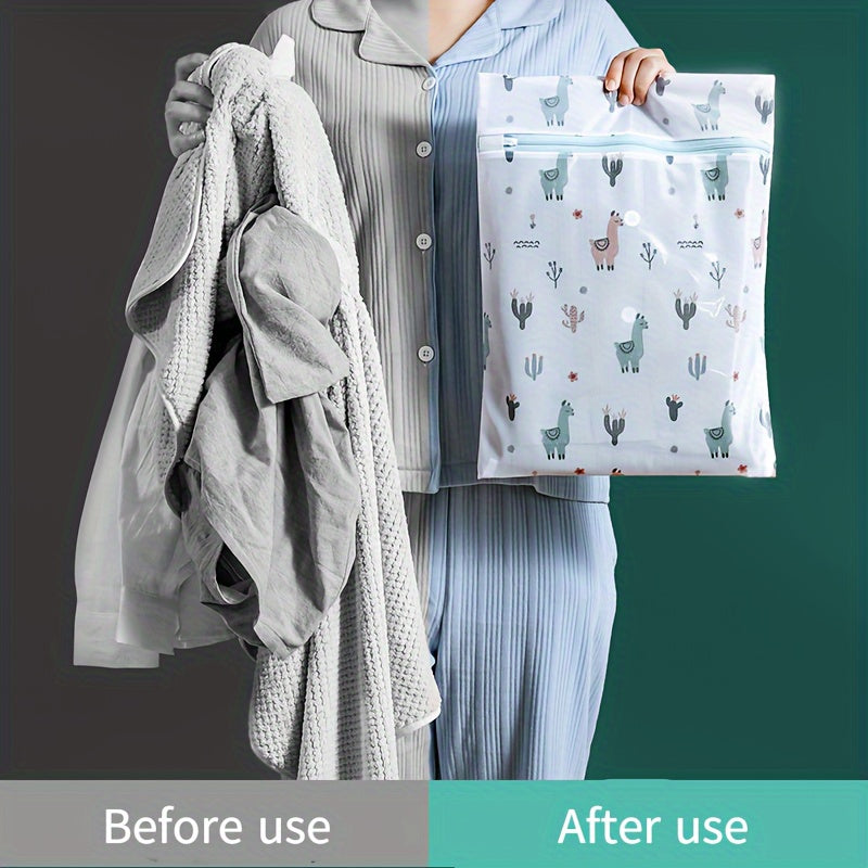 Juego de 3 bolsas de malla duraderas para lavandería con cremallera y diseño de alpaca