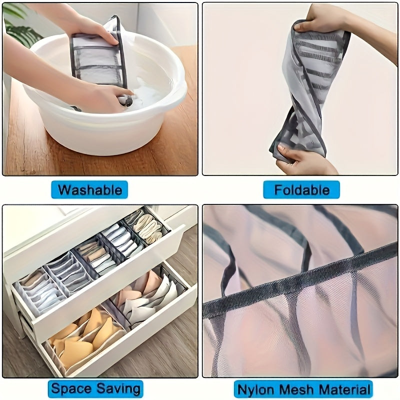 Juego de 3 organizadores de tela de malla para cajones para sujetadores, calcetines y ropa interior, cestas de almacenamiento plegables