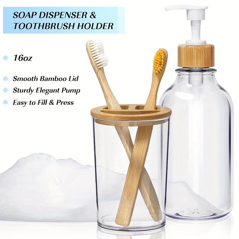 Juego de 4 accesorios de baño de bambú para organizar y decorar