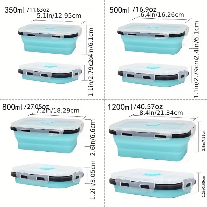 Juego de 4 recipientes de silicona apilables para almacenamiento de alimentos con tapas para almuerzos