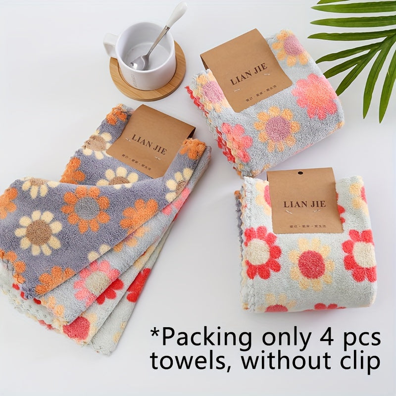 Juego de 4 toallas de coral absorbentes de secado rápido con estampado floral para baño y cocina