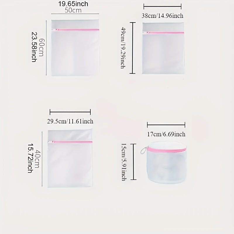 Juego de 4 bolsas de malla de poliéster con cremallera para delicados y ropa