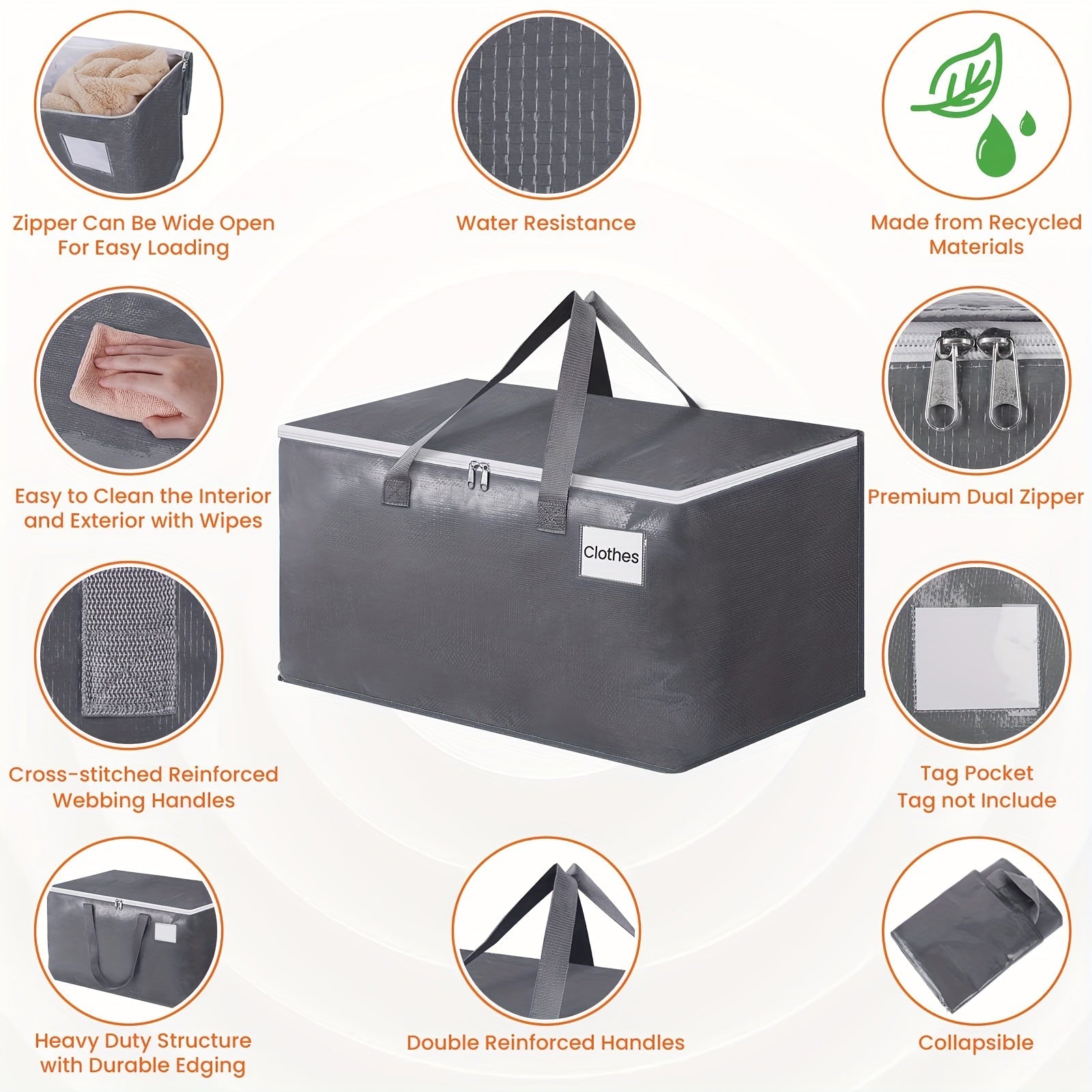 Juego de 4 grandes cestas de almacenamiento grises impermeables, plegables y rectangulares con asas