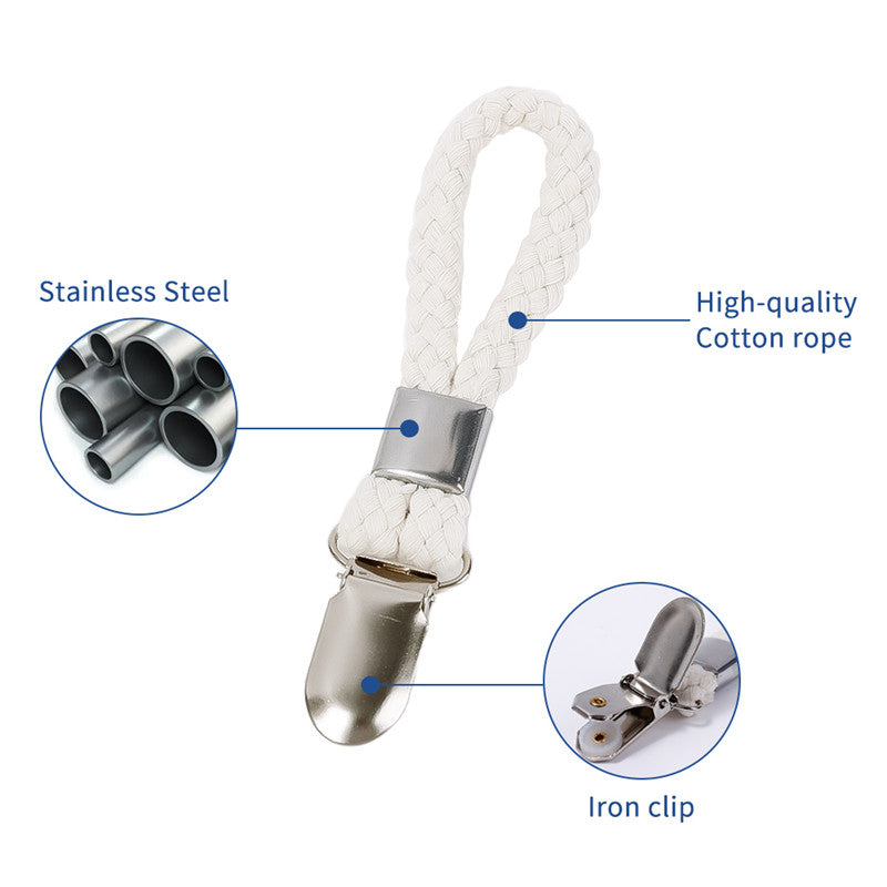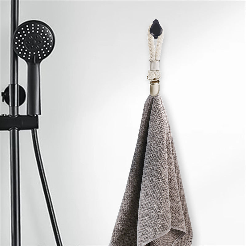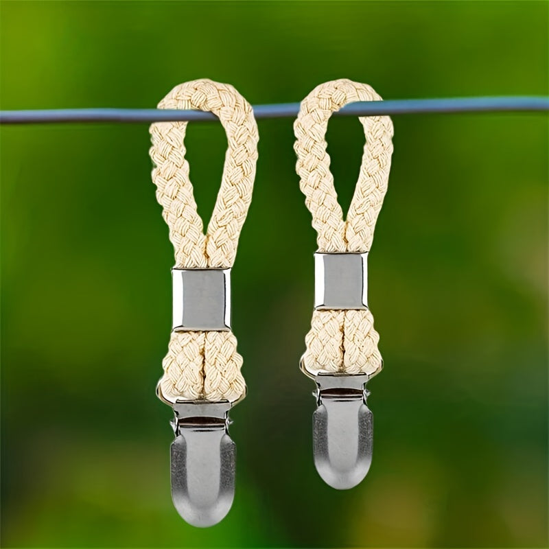 Juego de 4 clips de toalla de cuerda trenzada con pinzas de metal para organización de cocina y baño