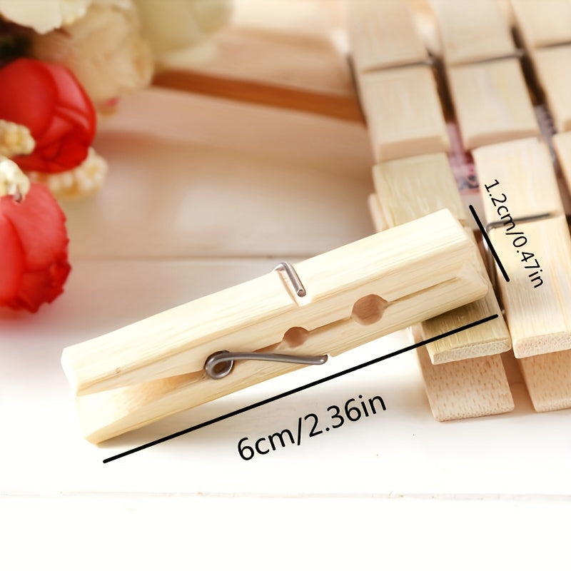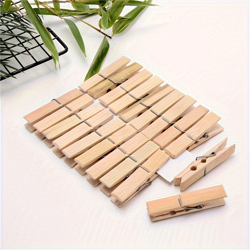 Juego de 40 pinzas de ropa de bambú resistentes a la intemperie para lavandería en interiores y exteriores