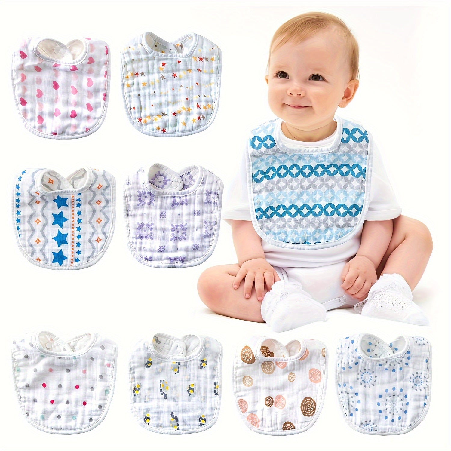 Juego de 5 baberos de algodón para bebé, baberos de gasa para alimentar, para Navidad, Acción de Gracias, Año Nuevo, San Valentín