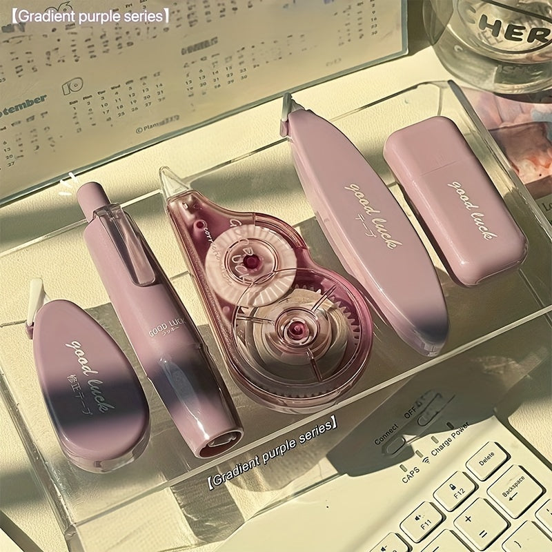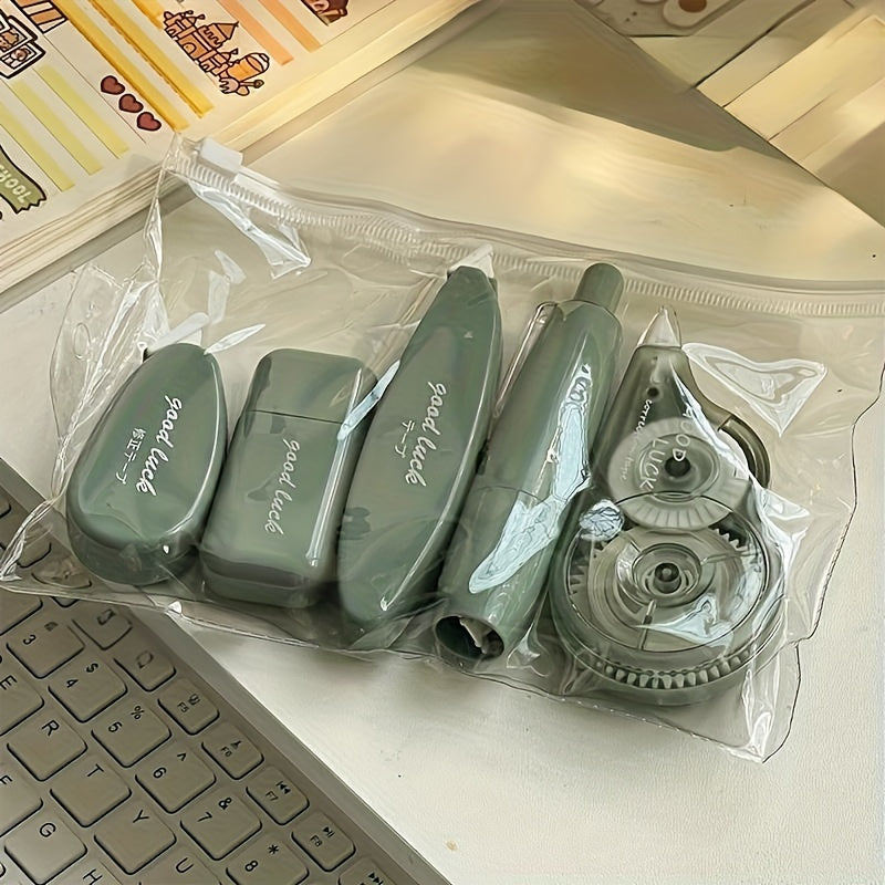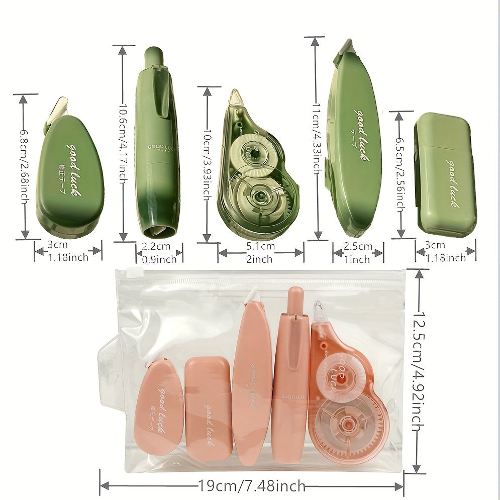 Juego de 5 cintas correctoras de degradado verde lima de gran capacidad, dispensador duradero de PP para escuela y oficina