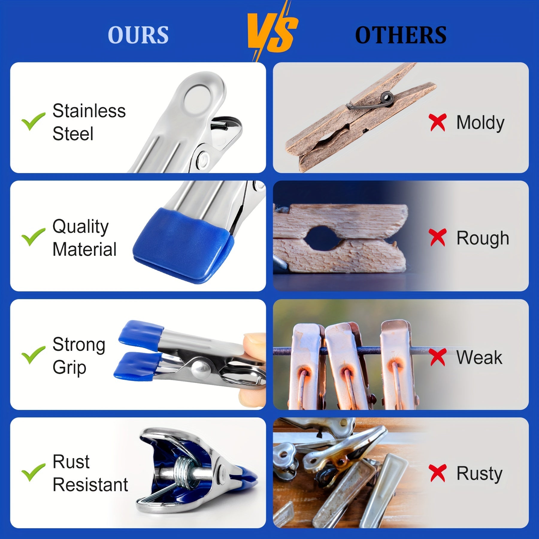 Juego de 50 pinzas de ropa de acero inoxidable para colgar ropa y fotos