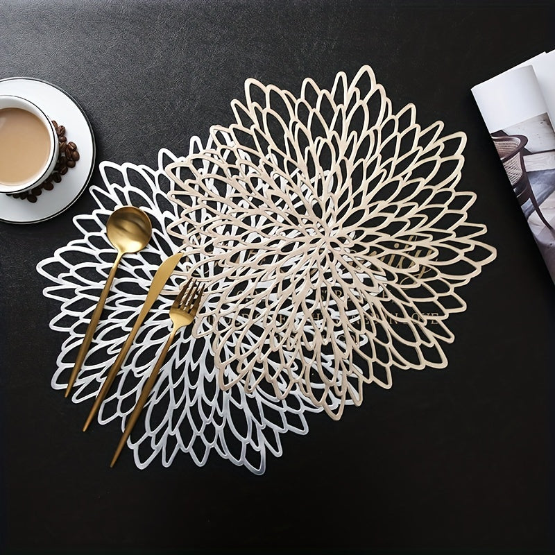 Juego de 6 manteles individuales dorados huecos para bodas y centros de mesa
