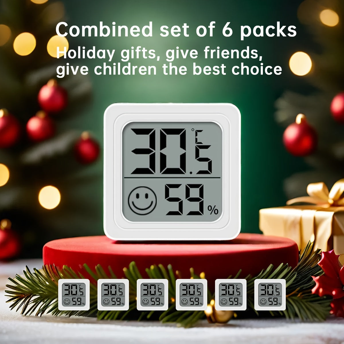 Juego de 6 combinaciones de termómetro higrómetro digital con pantalla LCD e indicador de confort para uso en interiores