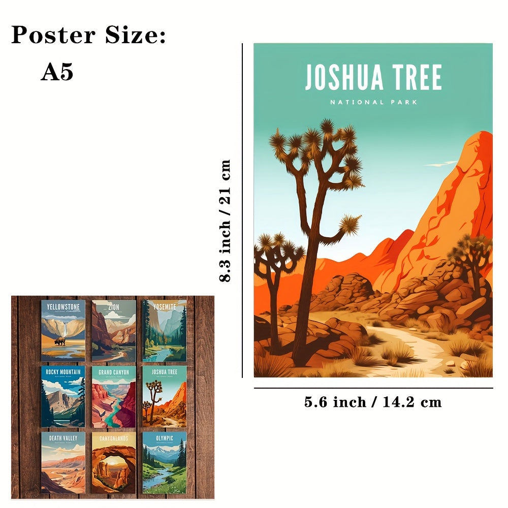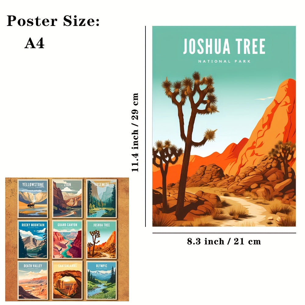 Juego de 9 grandes carteles de arte moderno de paisajes para parques nacionales. Marcos no incluidos.