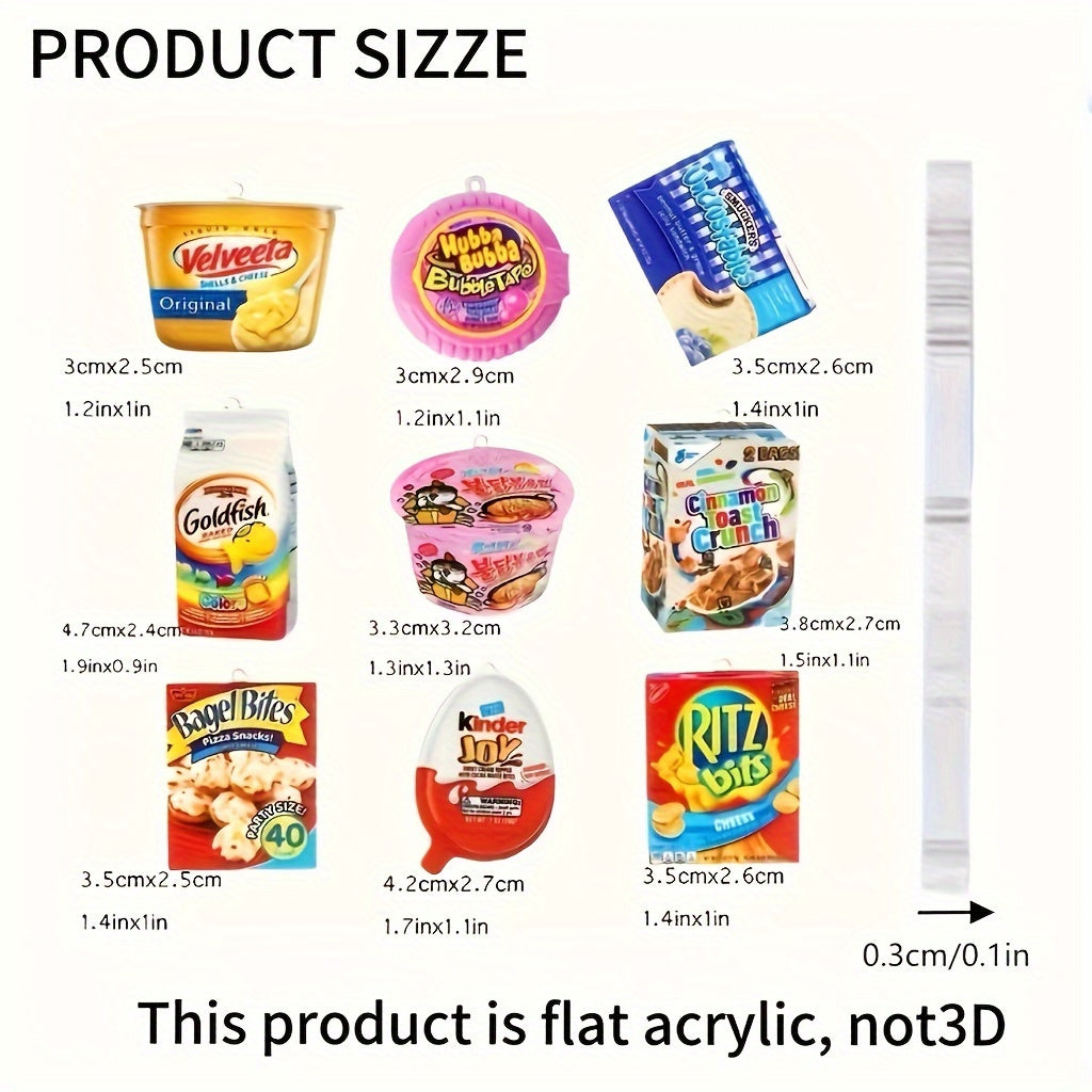 Juego de 9 llaveros de dibujos animados con temática de aperitivos para mujeres y niñas, charms de acrílico para mochilas