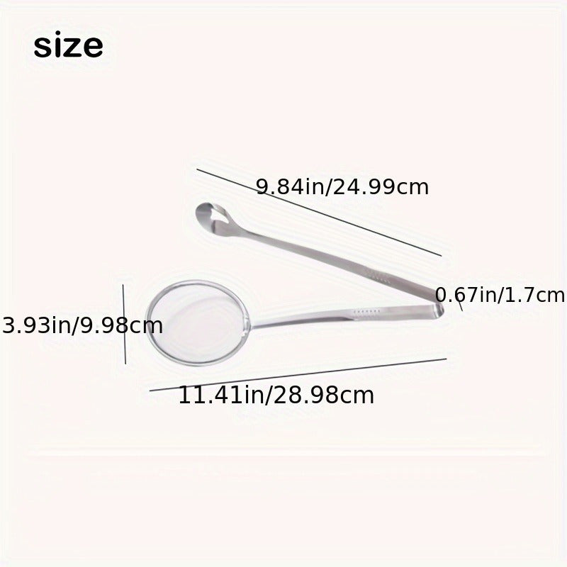 Juego de pinzas para freír y colador de acero inoxidable, resistentes al calor, plegables, reducción de goteo de aceite