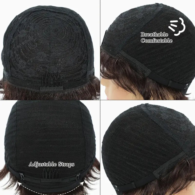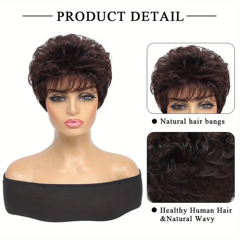 Mujeres pelucas cortas de cabello humano rizado con ondas y colores en degradado para negocios