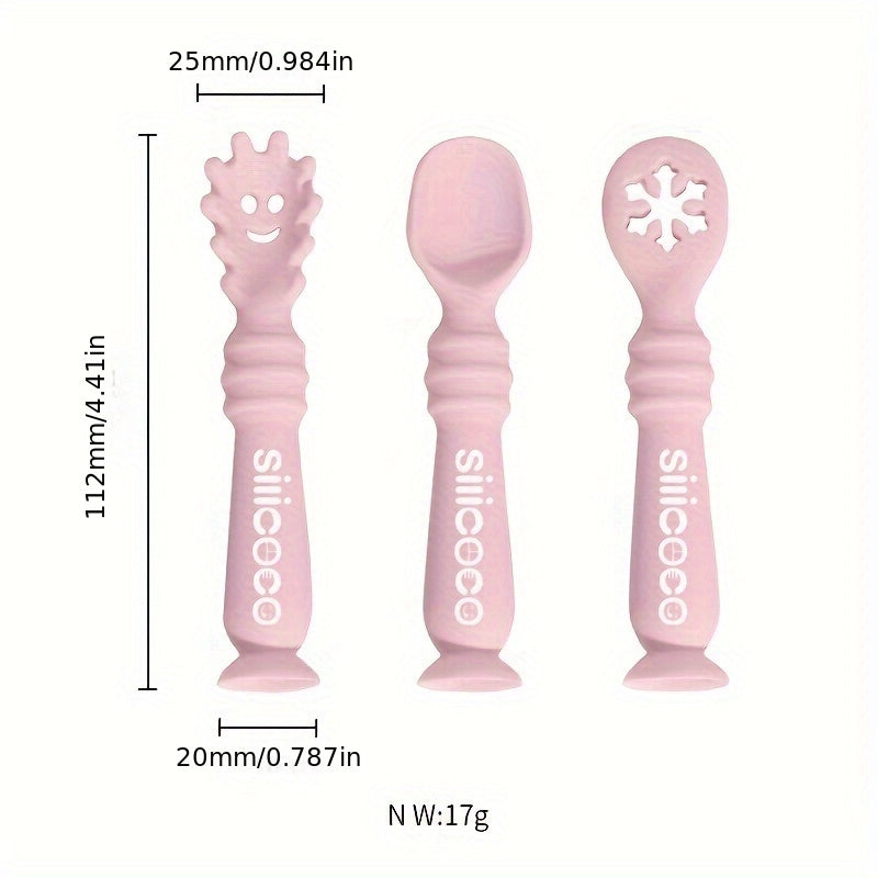 Juego de utensilios de silicona para niños de 3 piezas con diseño de cara feliz, no tóxico, seguro para microondas y lavavajillas
