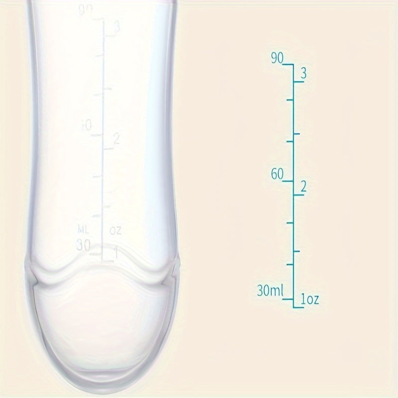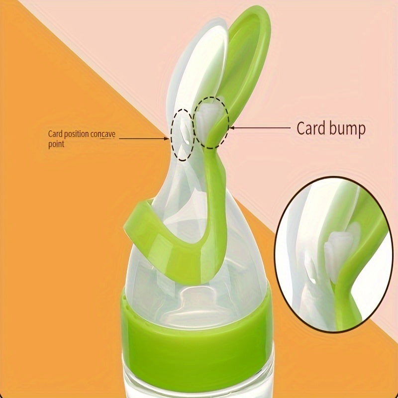 Bolsita de silicona para comida infantil con cuchara exprimible, acentos en amarillo y azul