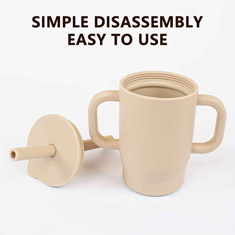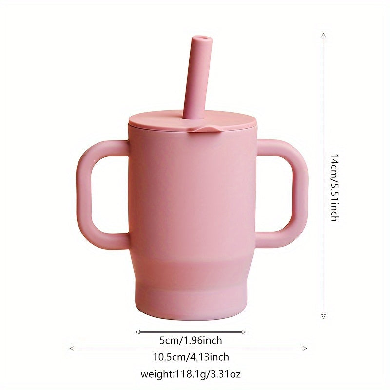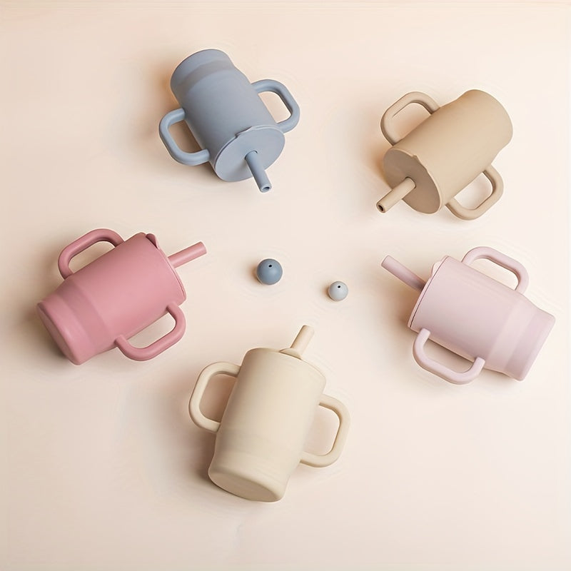 Vaso de silicona para niños, a prueba de fugas, libre de BPA, con asa y tapa con pajilla