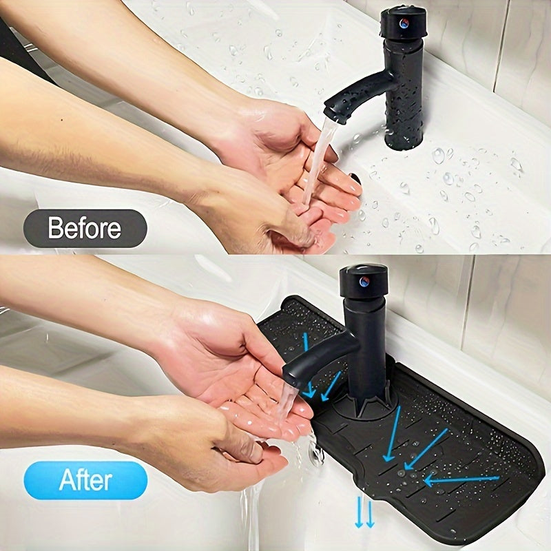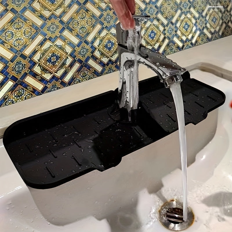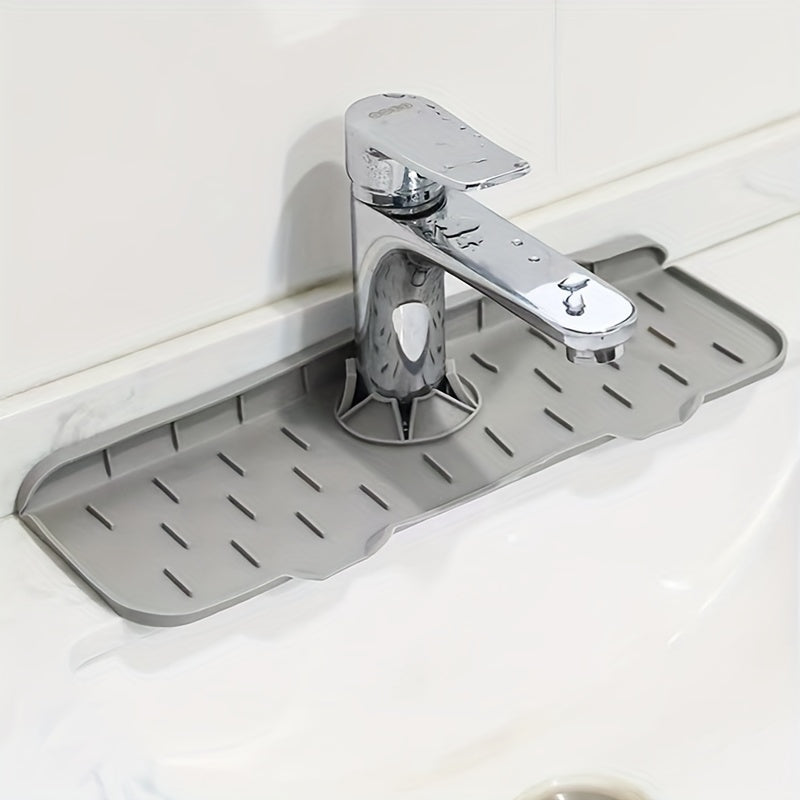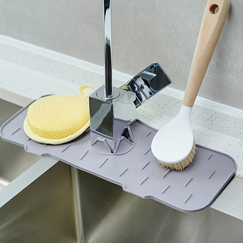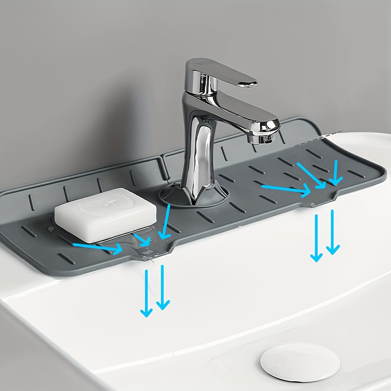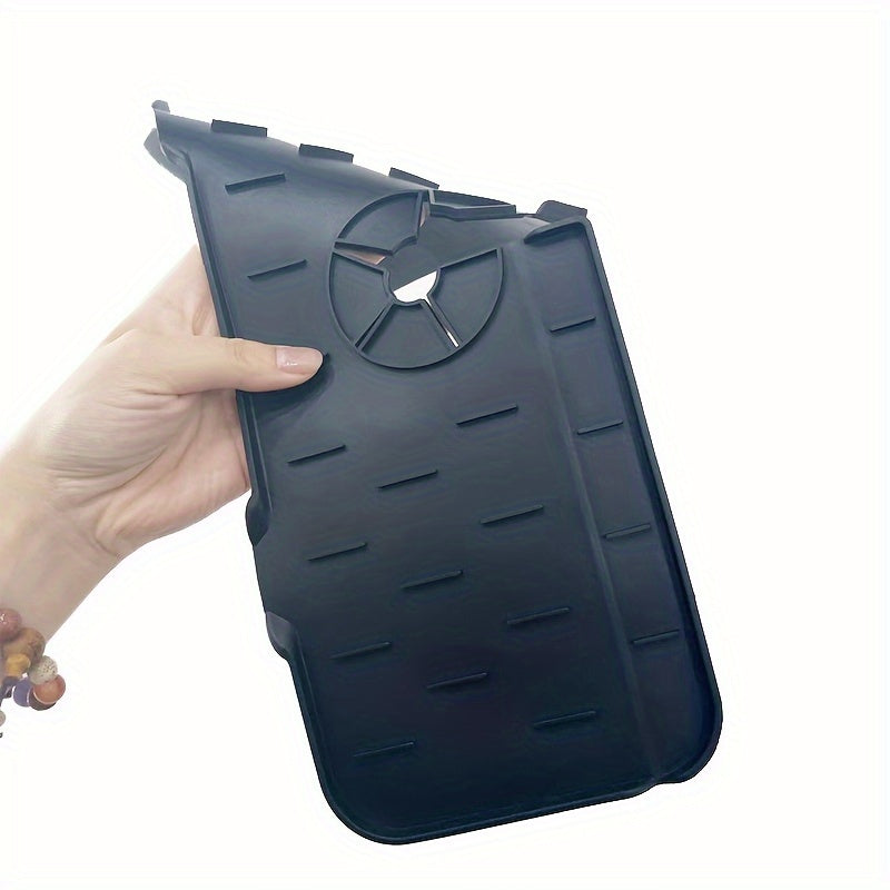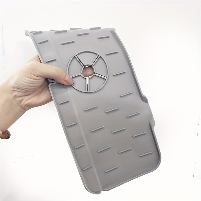 Alfombrilla de protección de silicona para salpicaduras, antideslizante, impermeable, con bandeja de drenaje, gris y negro, 1 pieza