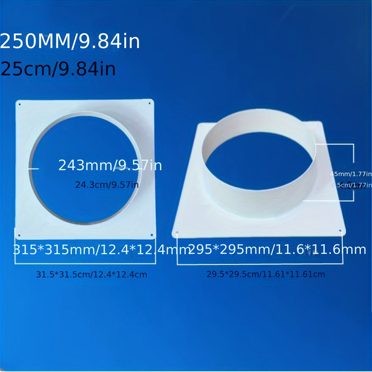 Conector de plástico blanco en forma de cuadrado para conducto de ventilación de aire acondicionado