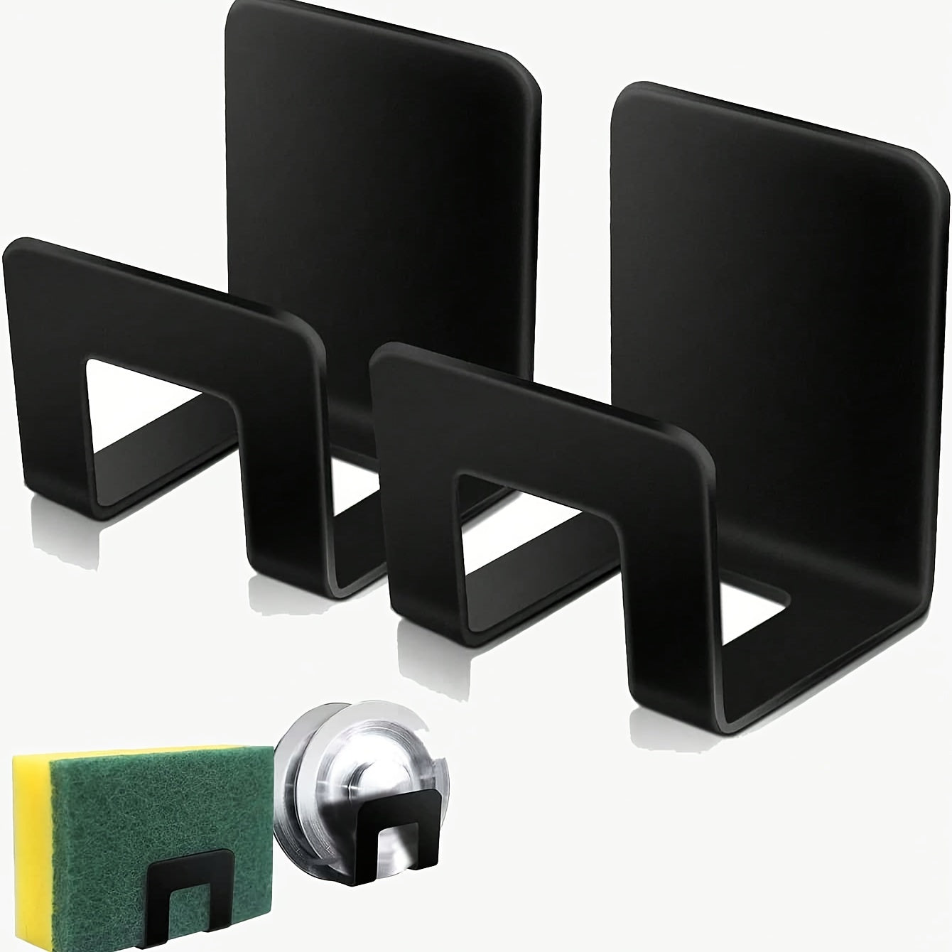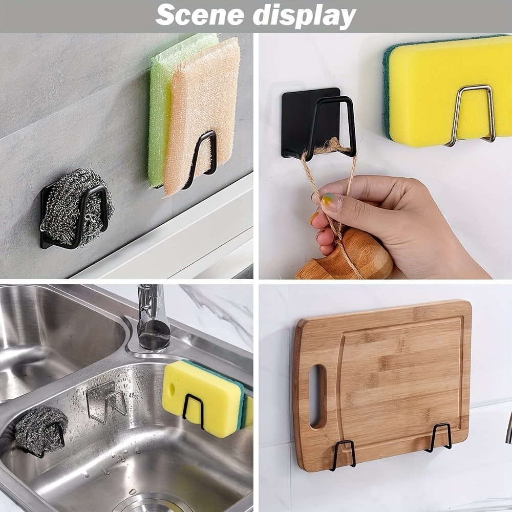 Organizador de fregadero de acero inoxidable con soporte para esponja y ganchos de utilidad