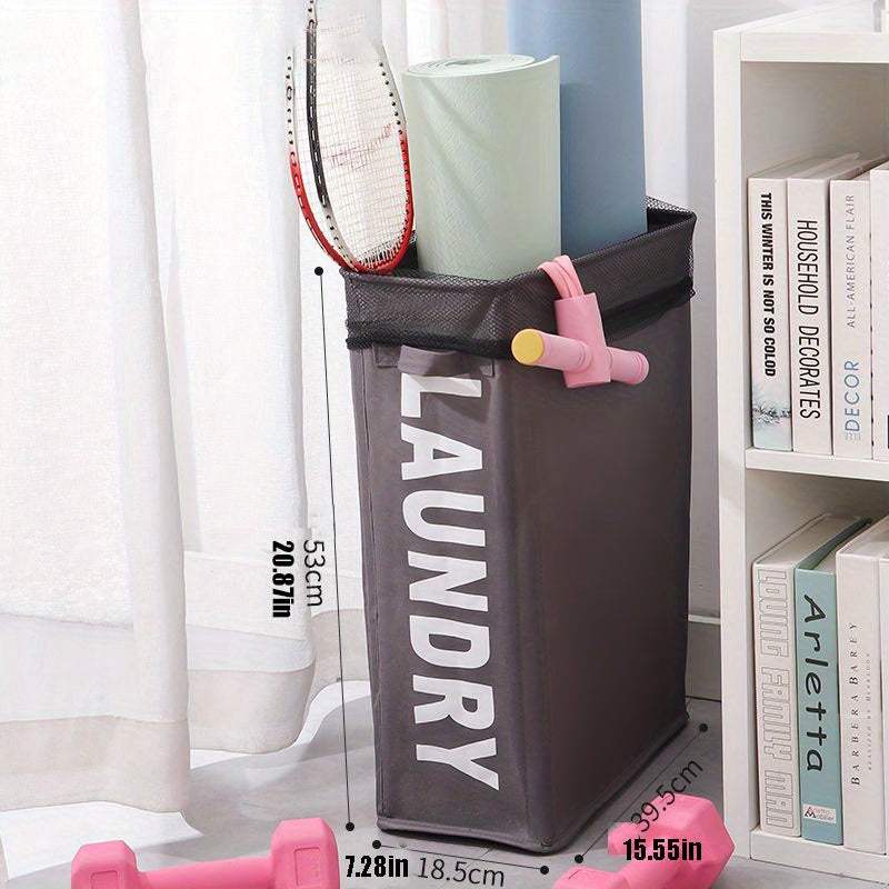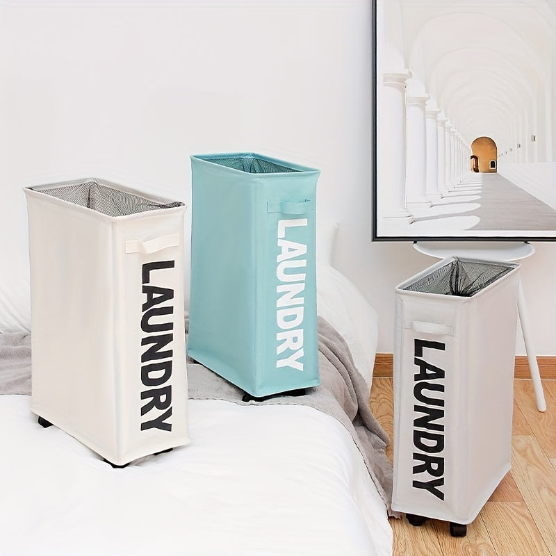 Cesta de ropa sucia delgada con malla a prueba de polvo y tela impermeable para almacenamiento de ropa