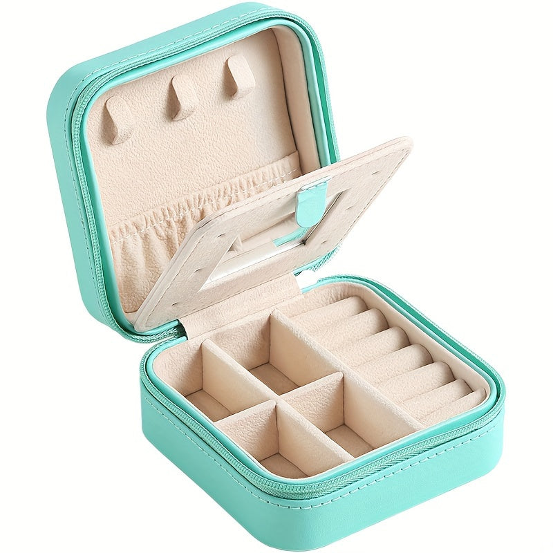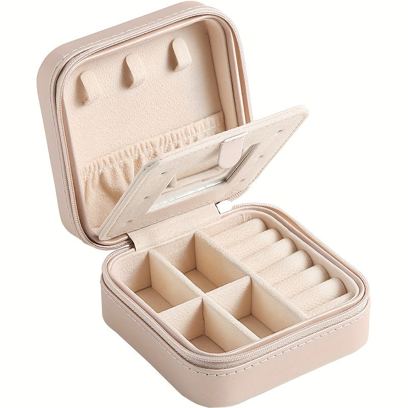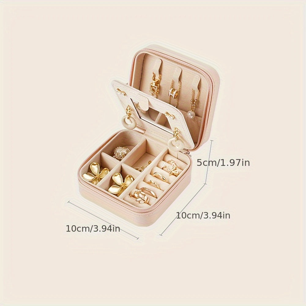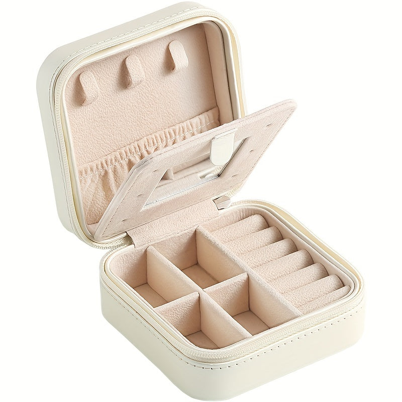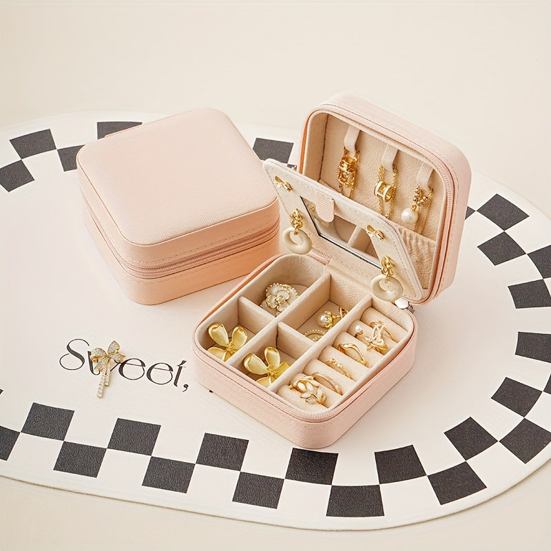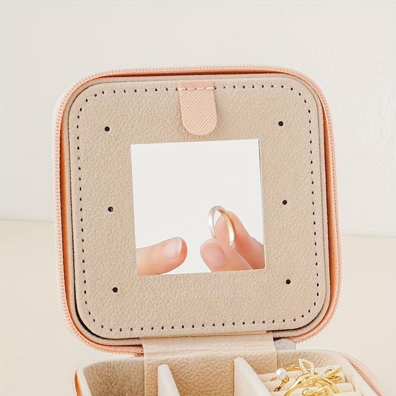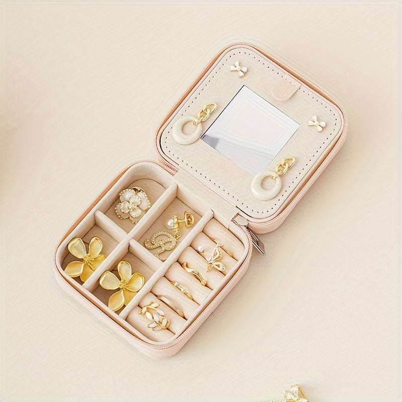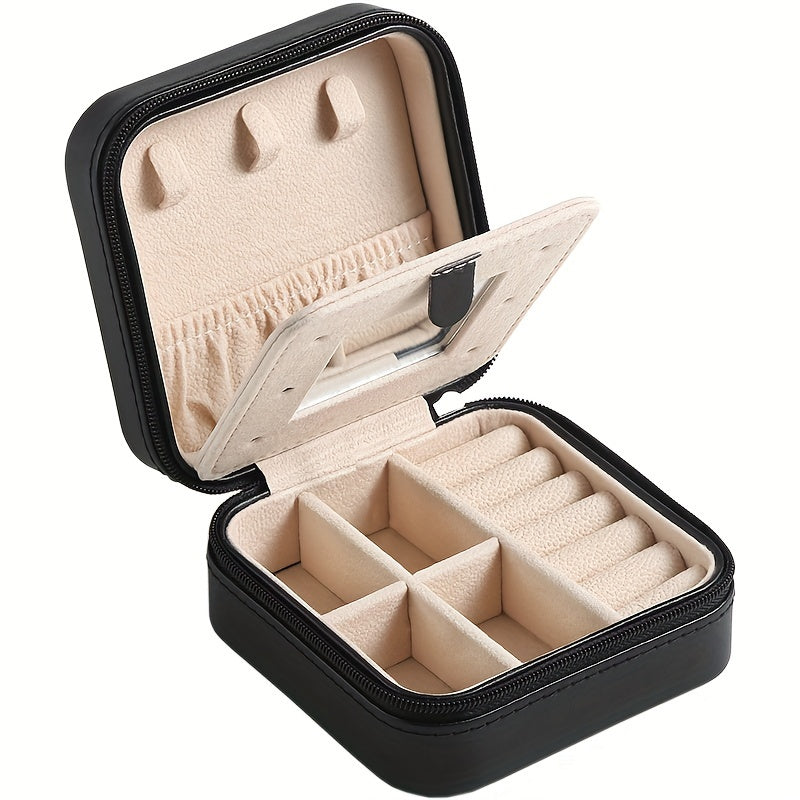 Organizador pequeño de joyas con espejo y cierre de cremallera para viaje, con tres capas y múltiples compartimentos