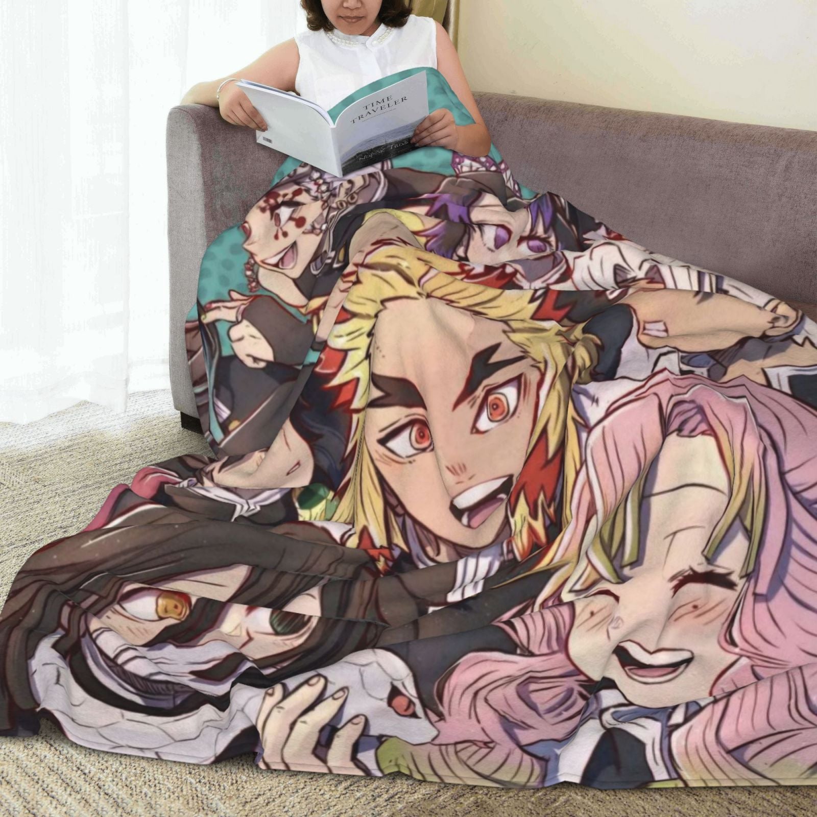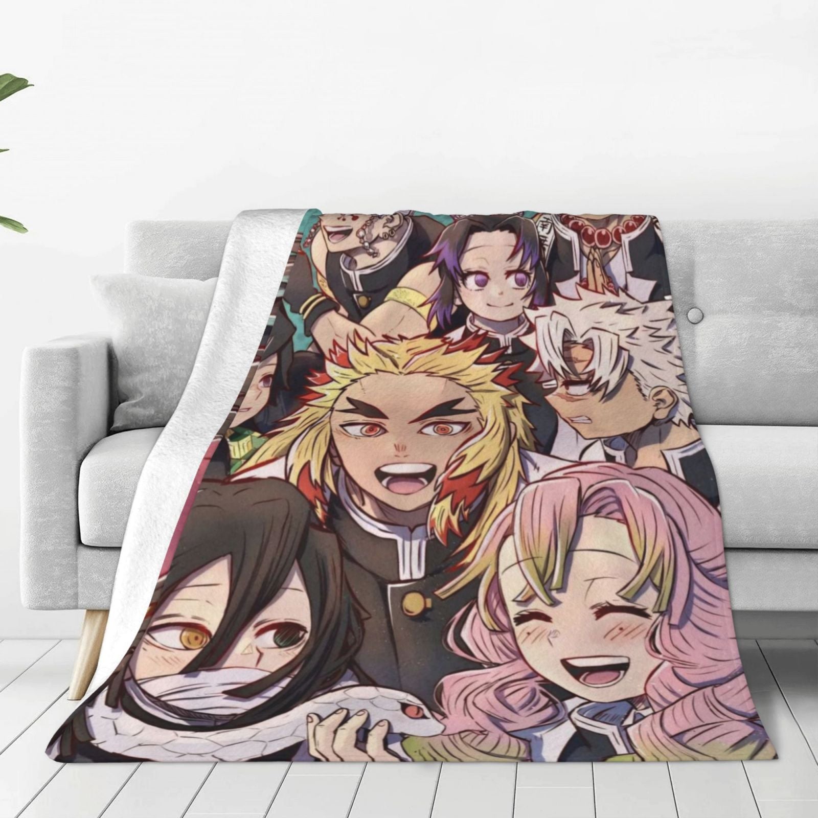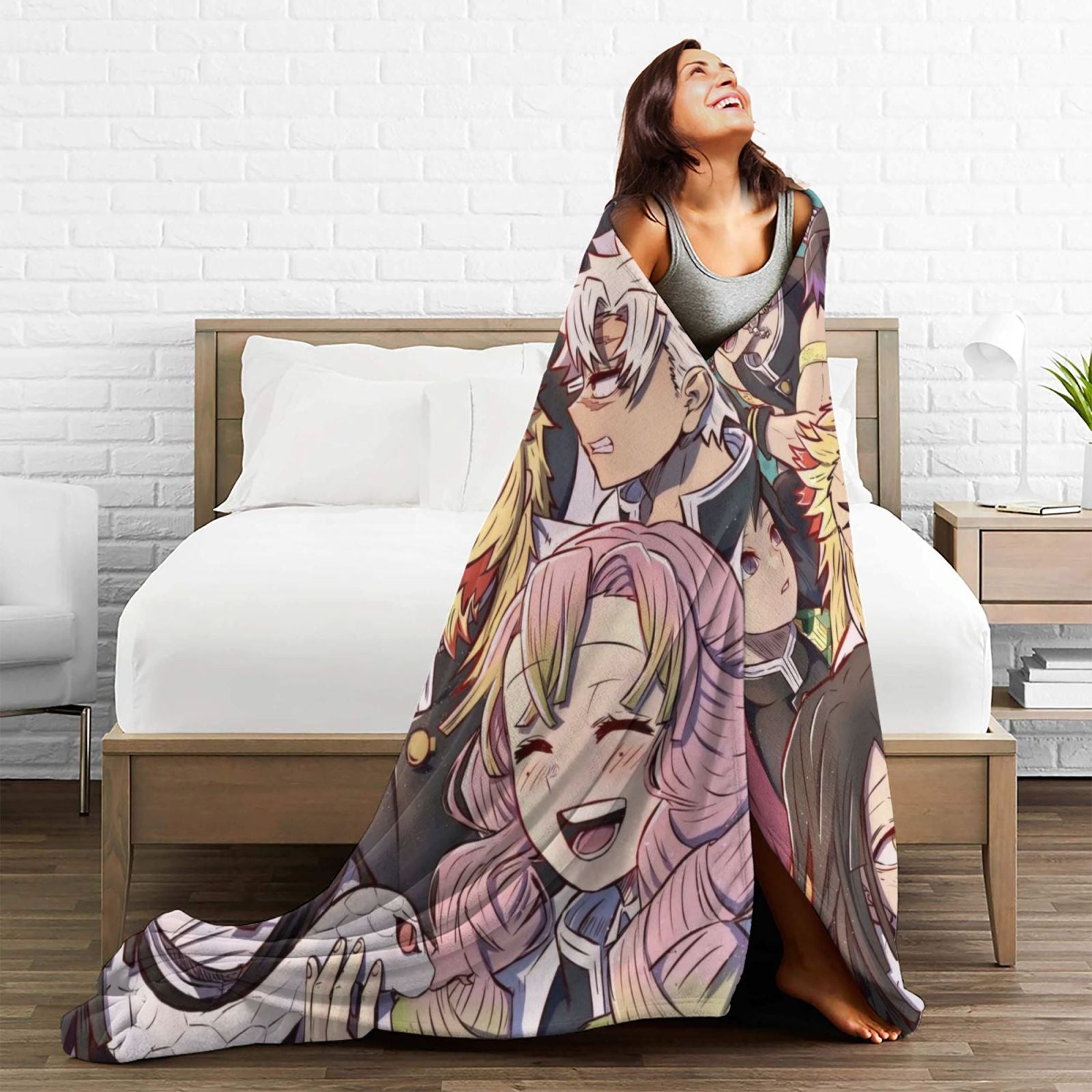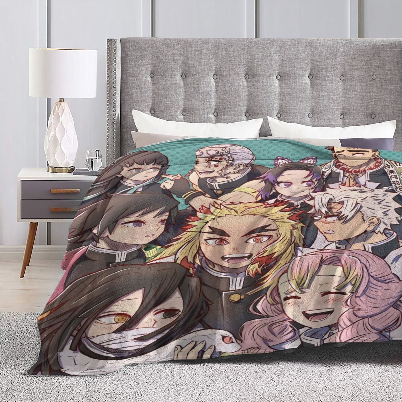 Manta de felpa tipo franela Demon Hunter con patrón geométrico, apta para todas las estaciones, de punto de poliéster