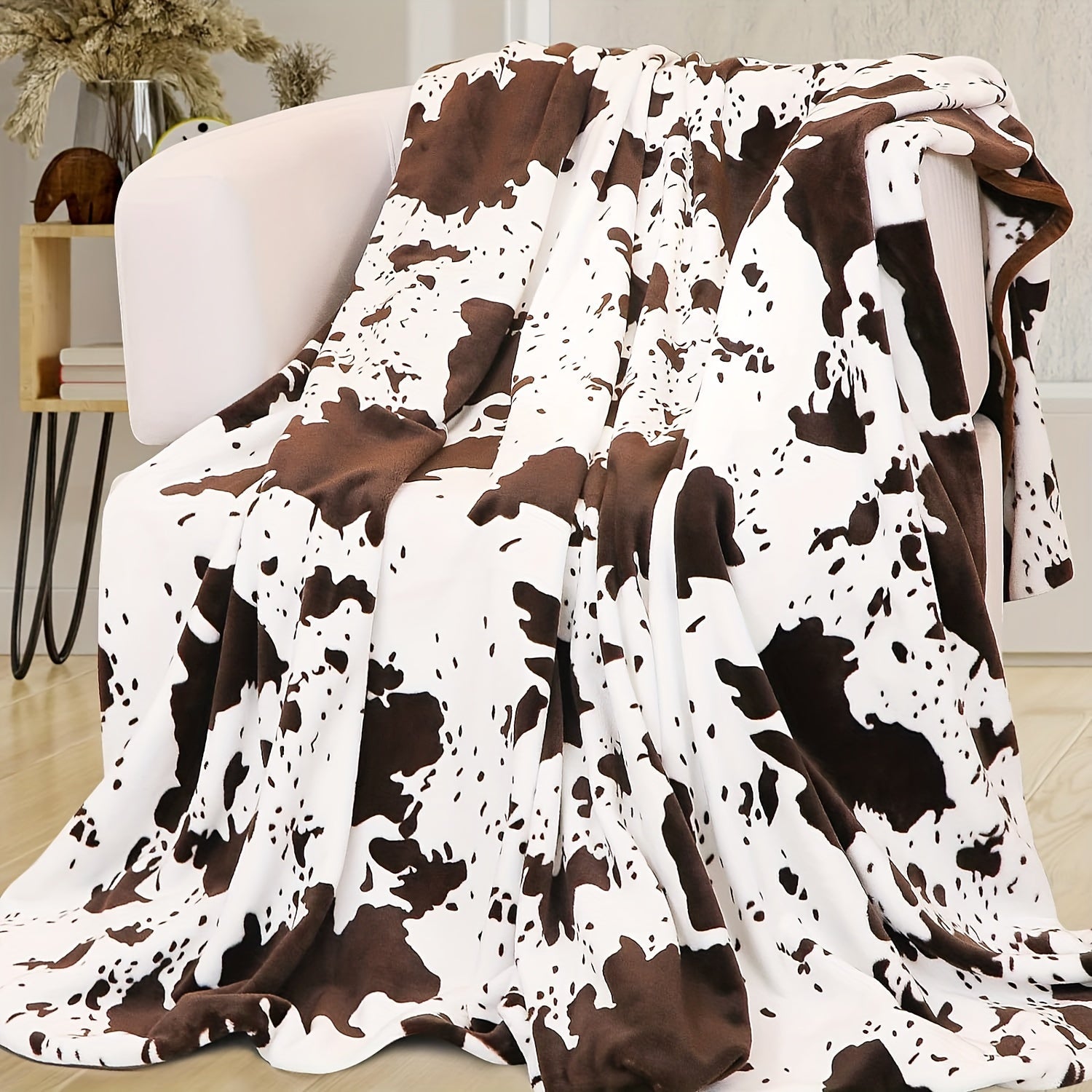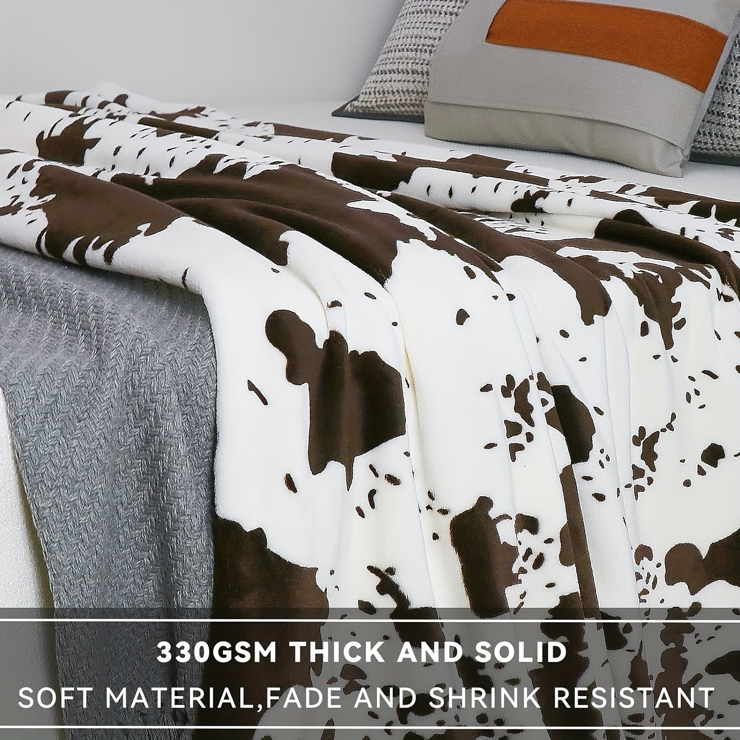 Manta de franela con estampado de vaca de felpa 100% poliéster, cálida para todas las estaciones