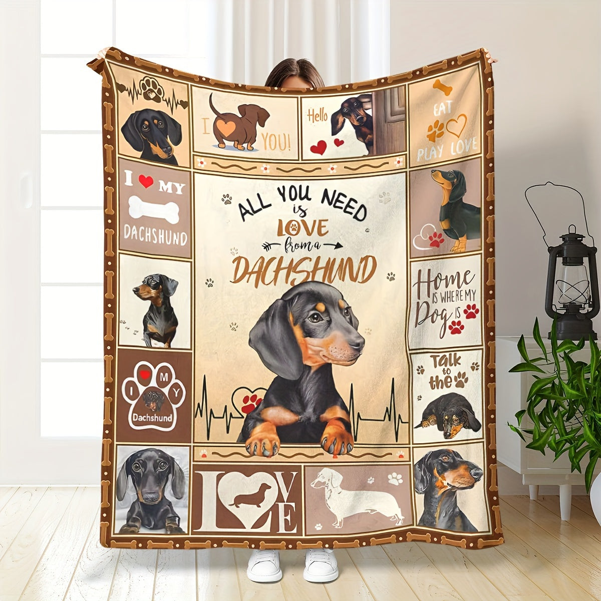 Manta de felpa suave con estampado de perro salchicha para niños y adultos, cálida, acogedora y multiusos