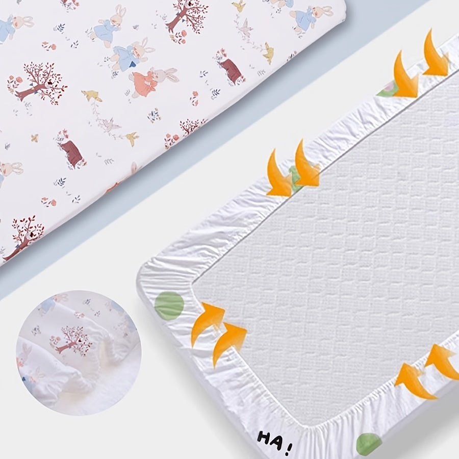 Sábana de tela de punto suave para cuna para recién nacidos y niños pequeños con estampado de animales, no impermeable, lavable a máquina