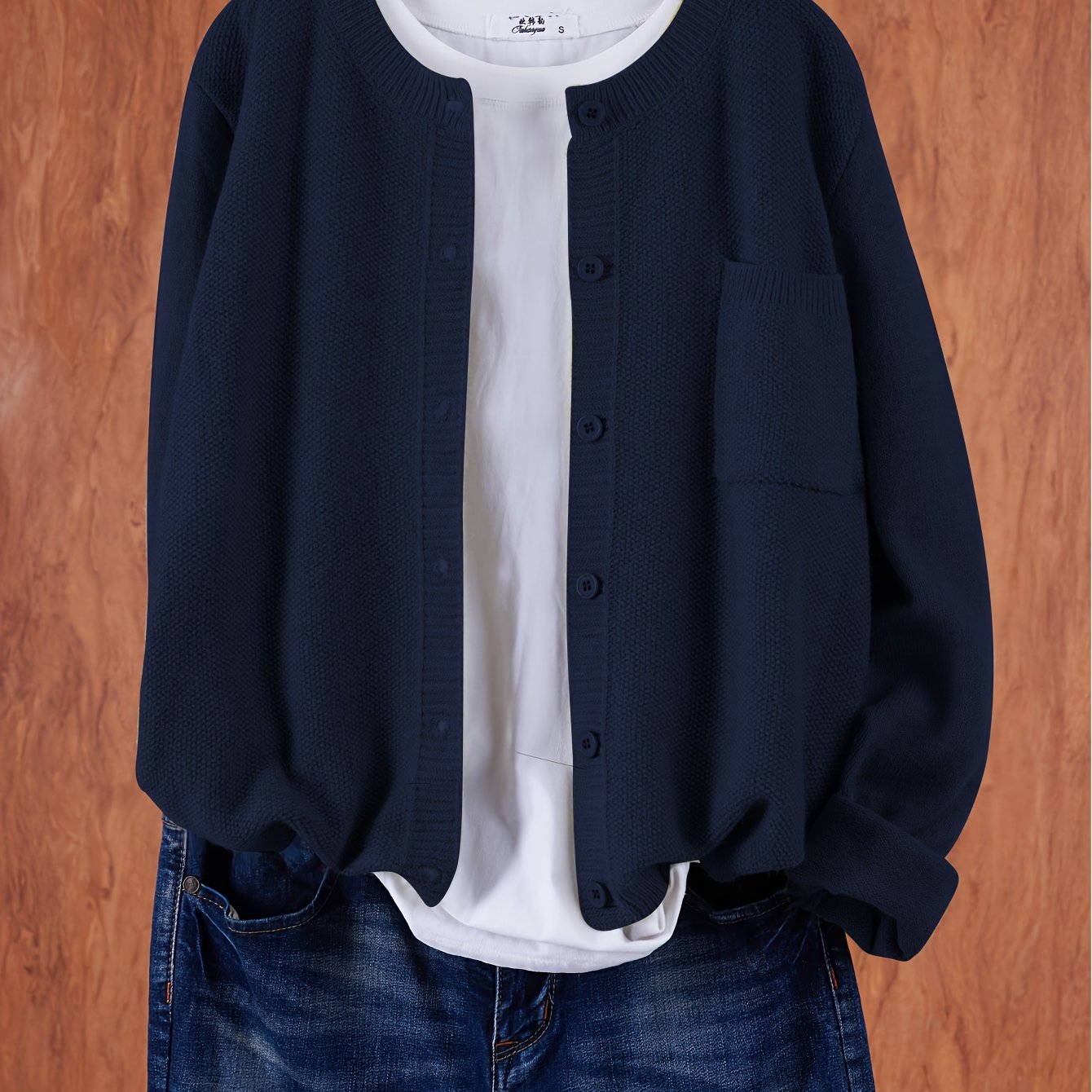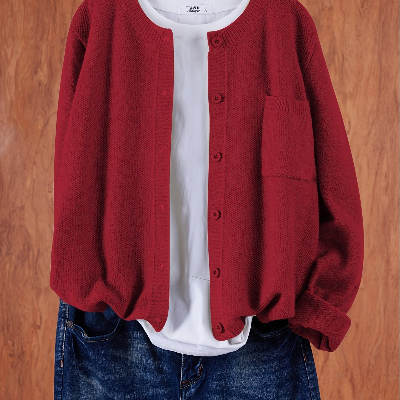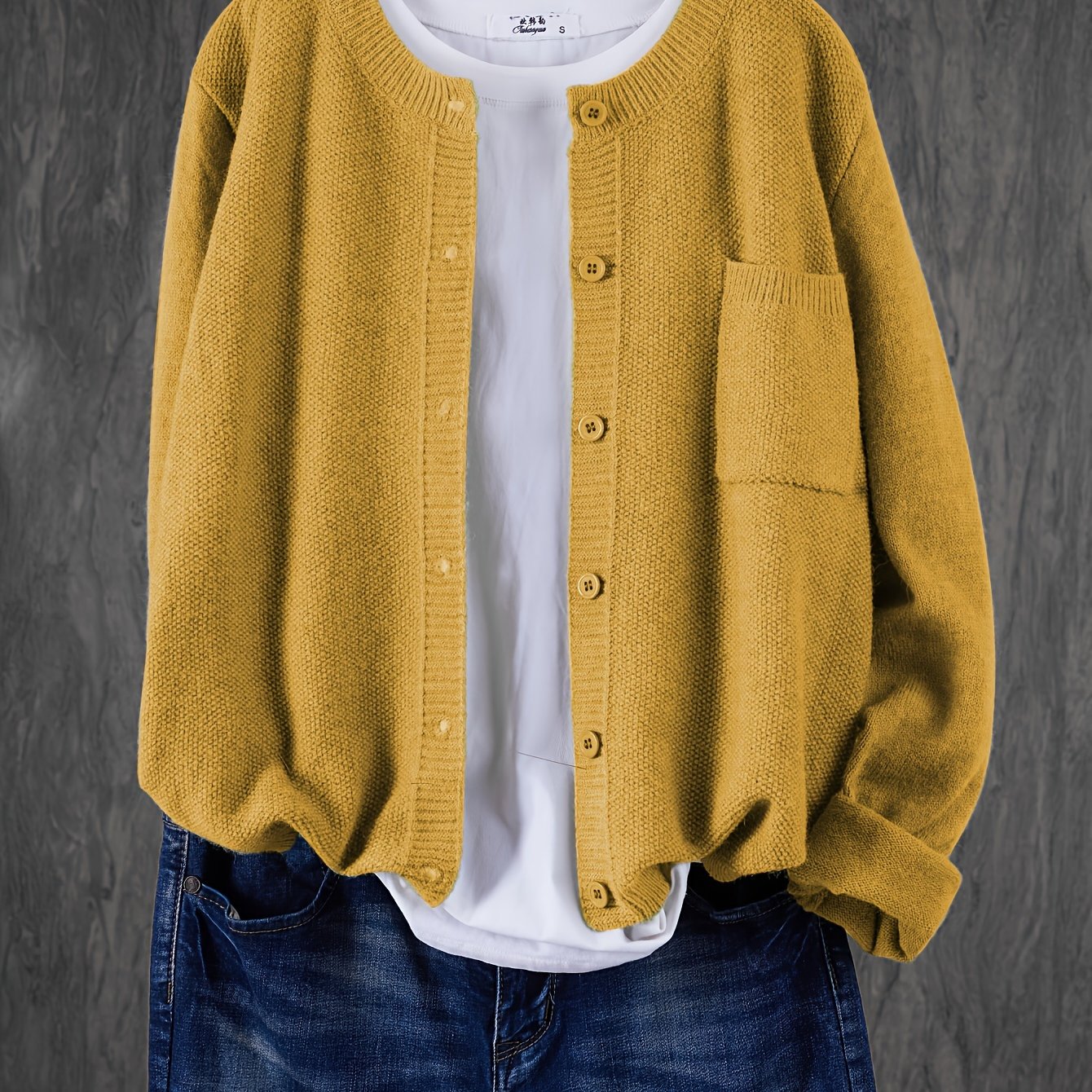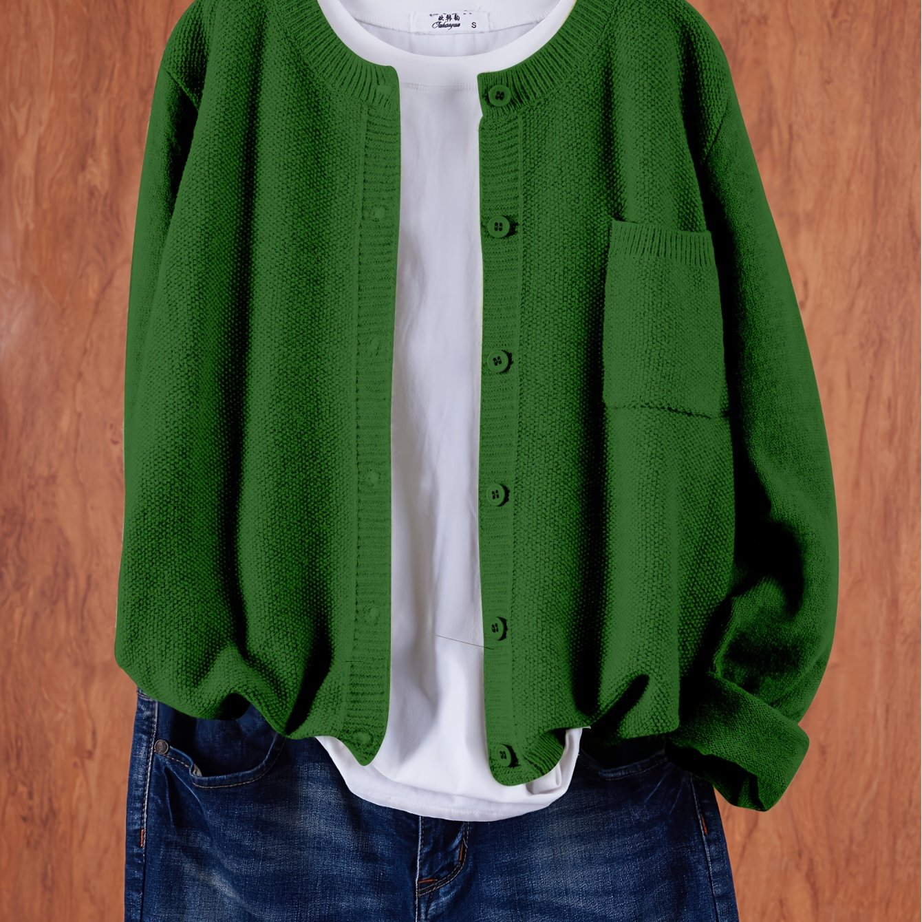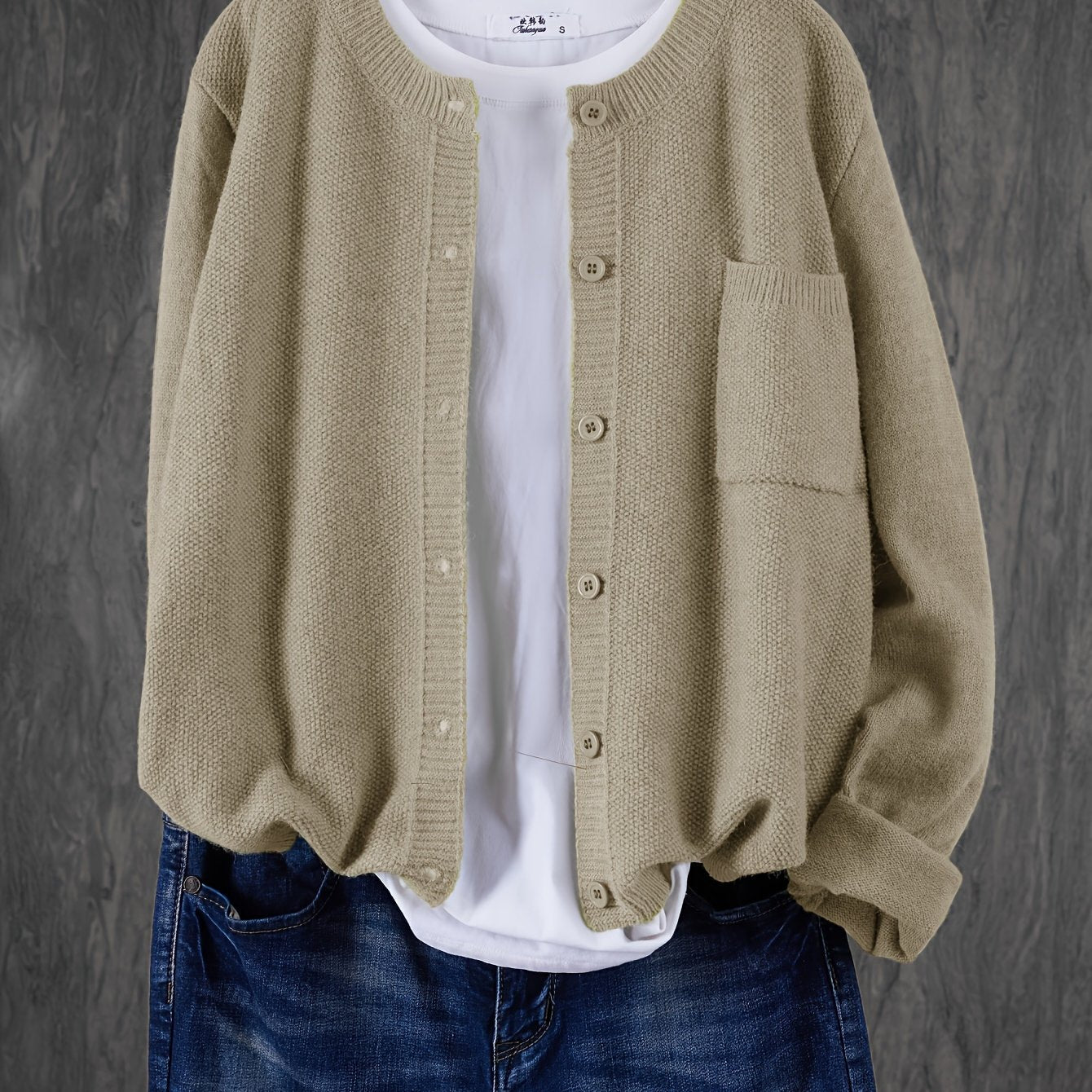 Cárdigan de punto sólido para mujer con hombros caídos, bolsillos y botones en el frente para primavera y otoño