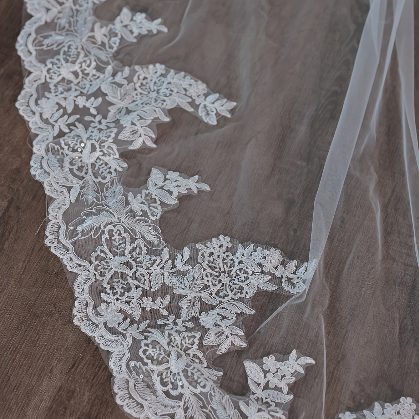Velo de encaje para novia con cola larga, accesorio de boda estilo barroco